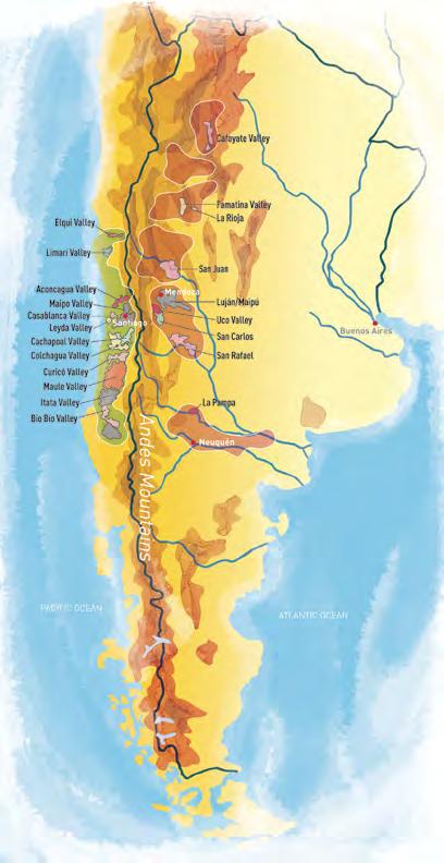 Chile is a long thin strip of a country, with its natural boundaries consisting of the Andes to the east, the Pacific Ocean to the west and a lower coastal range of mountains in between. To the north lies the Atacama Desert, and the Patagonian Lake District to the south. Traditionally, vine growing was done in the Central Valley, south of Santiago. Since the 1990s, winemakers have been clamouring for increasingly more marginal and extreme regions to develop.