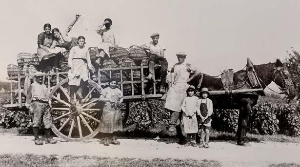 photo — This photo from 1905 shows the Dubois Family, their children and cousins getting together to harvest with wicker baskets.