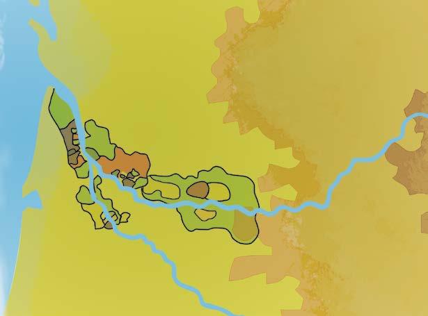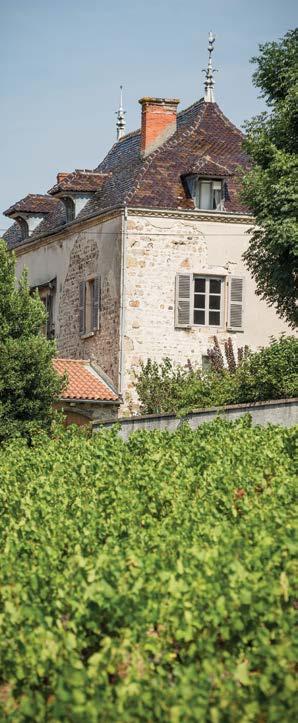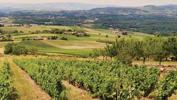 Located at the southern end of the Burgundy region, Beaujolais specializes in the Gamay grape. This is because of the granitic soils in the region, whereas much of Burgundy is limestonebased. Within the region are ten individual “Crus” – situated on a series of gentle granite hills that start just south of Mâcon. Beaujolais-Villages wines are made in 38 villages that encircle the ten Beaujolais Crus. Southwards, around Villefranche-surSaône and towards Lyon, the landscape is flatter. This is where the majority of Beaujolais wines are made. Pockets with higher amounts of limestone in the soil are more suitable for growing Chardonnay, which is used to make white and sparkling wines.