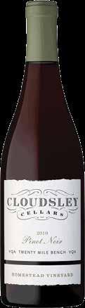 The 2019 Cloudsley Cellars Homestead Vineyard Pinot Noir is a single-vineyard wine crafted from fruit grown in Niagara’s Twenty Mile Bench appellation. This is a Burgundianstyle Pinot with an evolving bouquet of cherry, leather, balsamic and cured meat. Upon the first sip, the palate expresses notes of cherry, strawberry and raspberry framed with fine grained tannin. An excellent match for beef carpaccio. 2025-2026 –lw