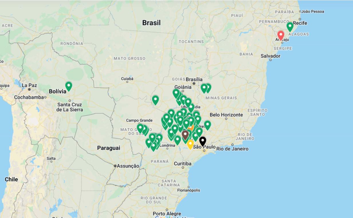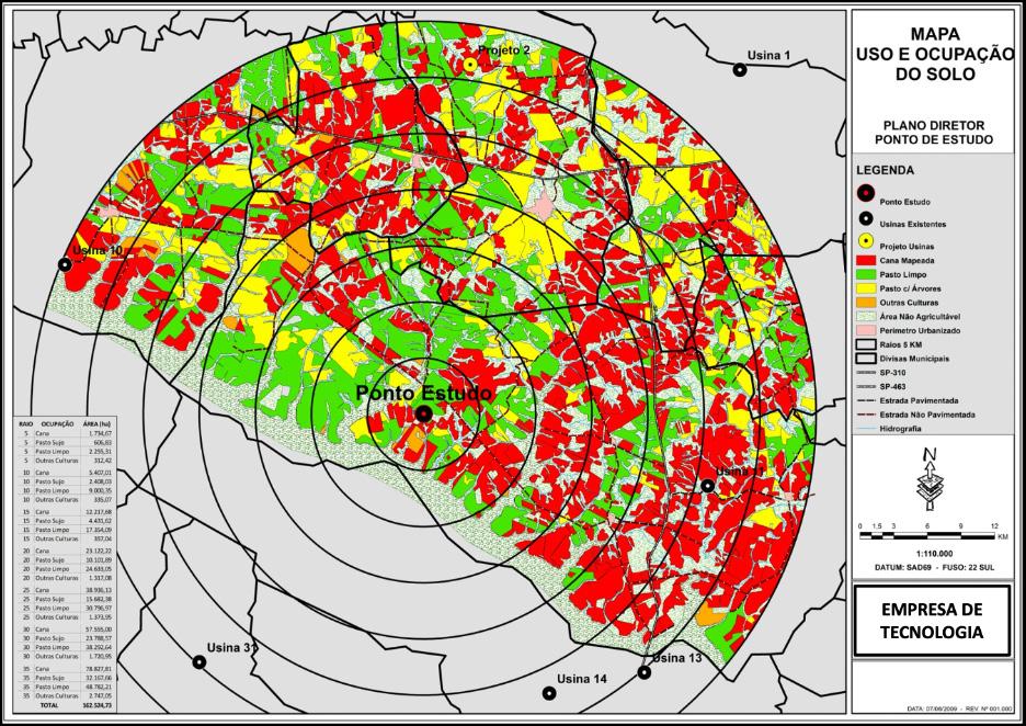 Um levantamento via satélites de uso e ocupação do solo no entorno da indústria auxilia as decisões dos gestores. Com ele, é possível identificar, com exatidão, os hectares utilizados com cana-de-açúcar, áreas com outras culturas (cítrus, eucalipto, milho, soja), áreas disponíveis em pastagens e suas respectivas distâncias até a indústria, além da declividade do terreno e relevo.