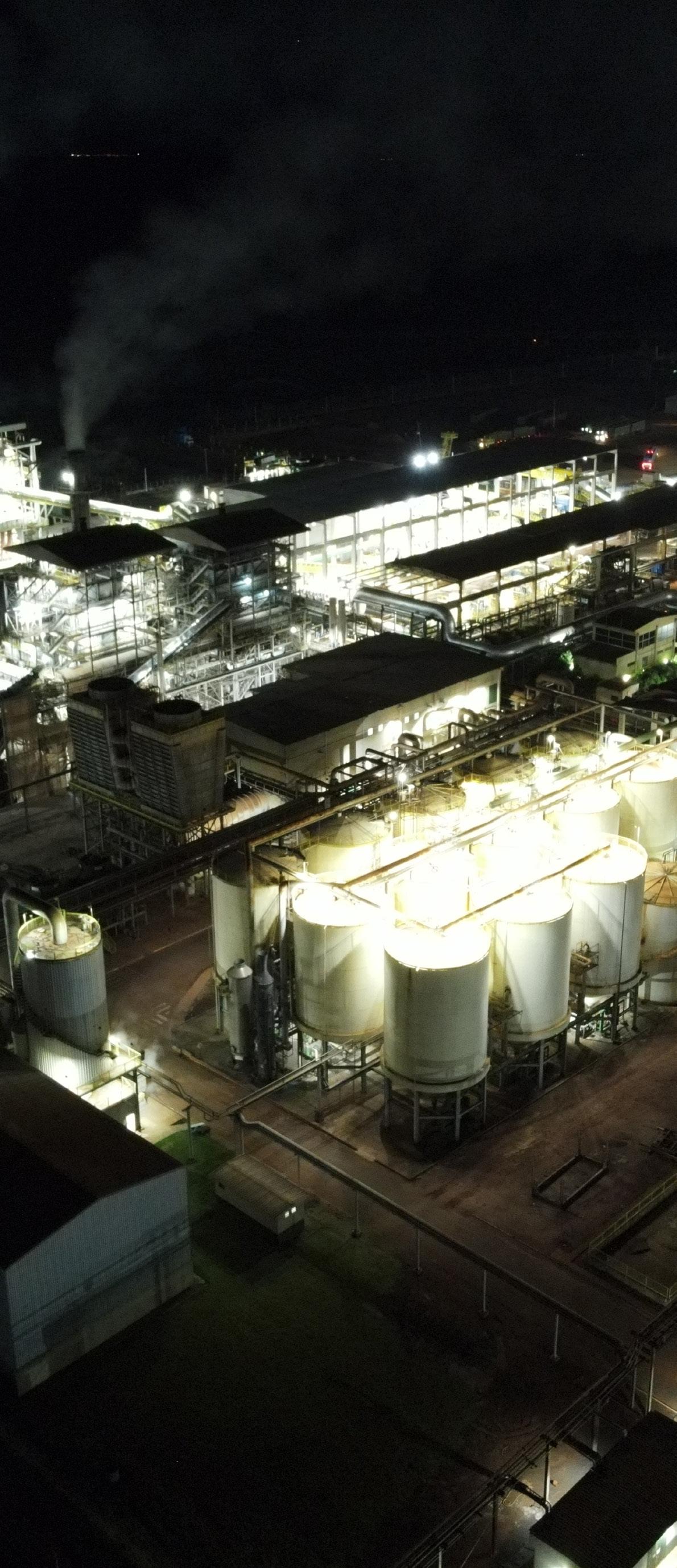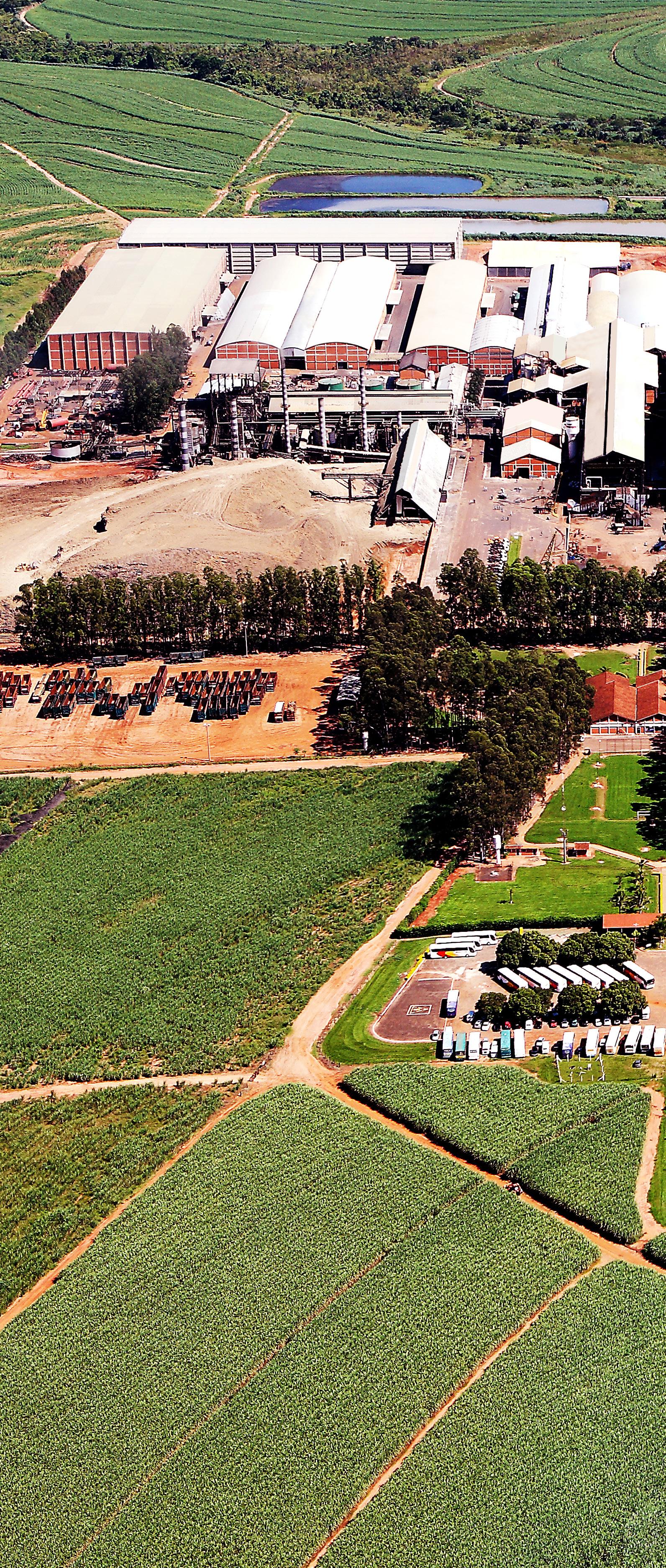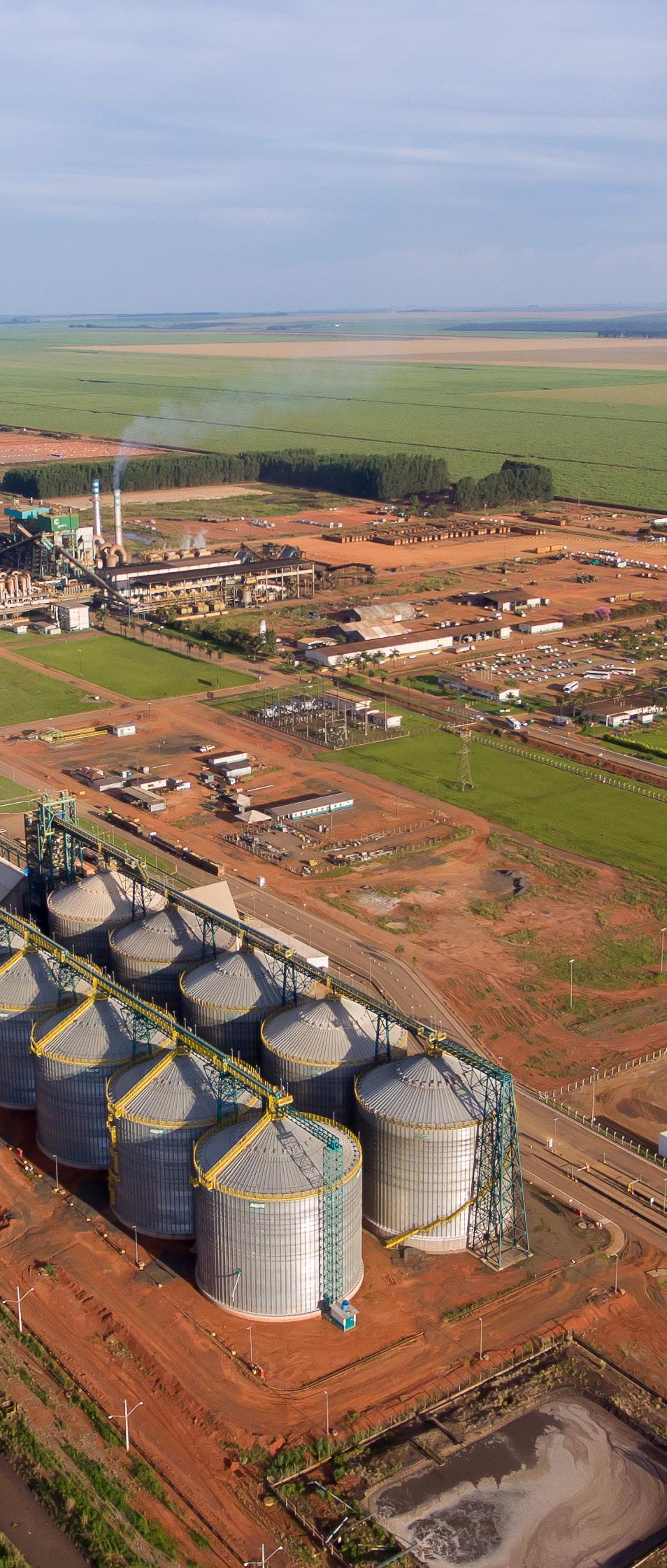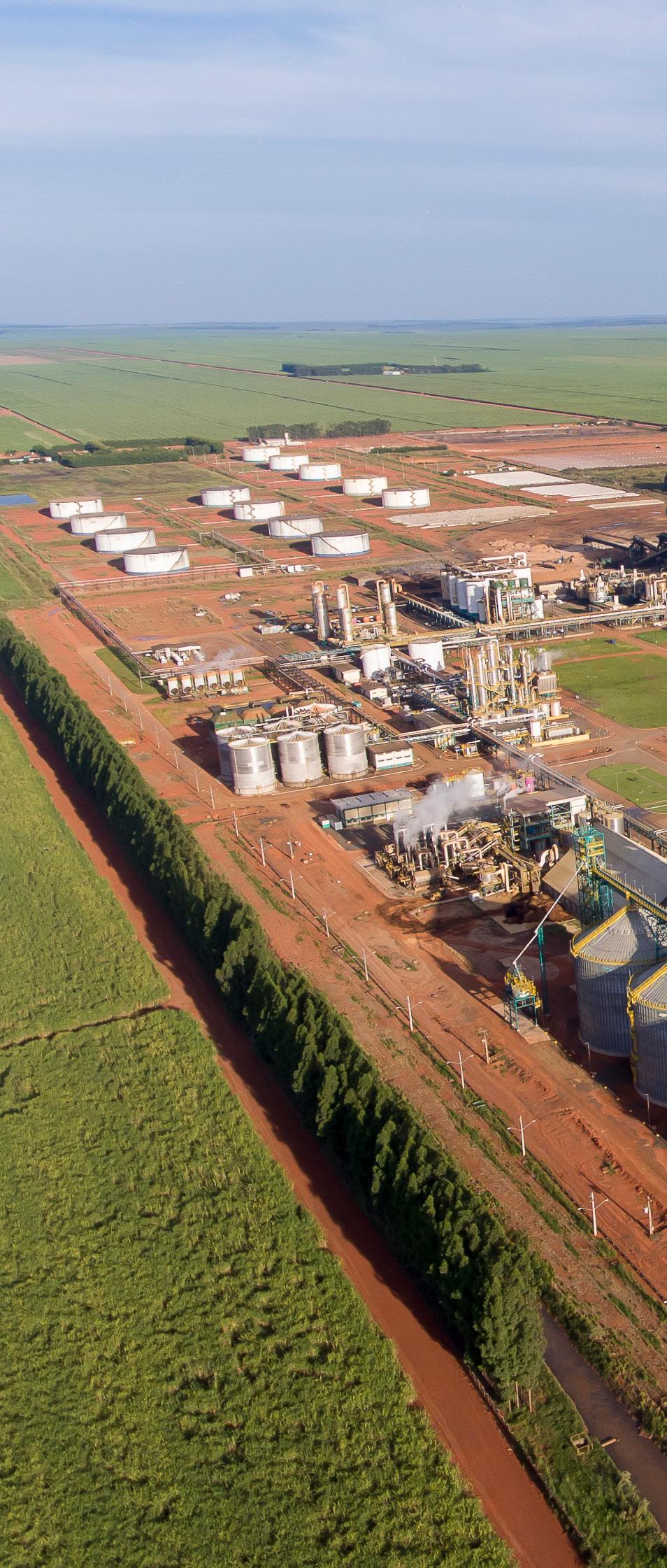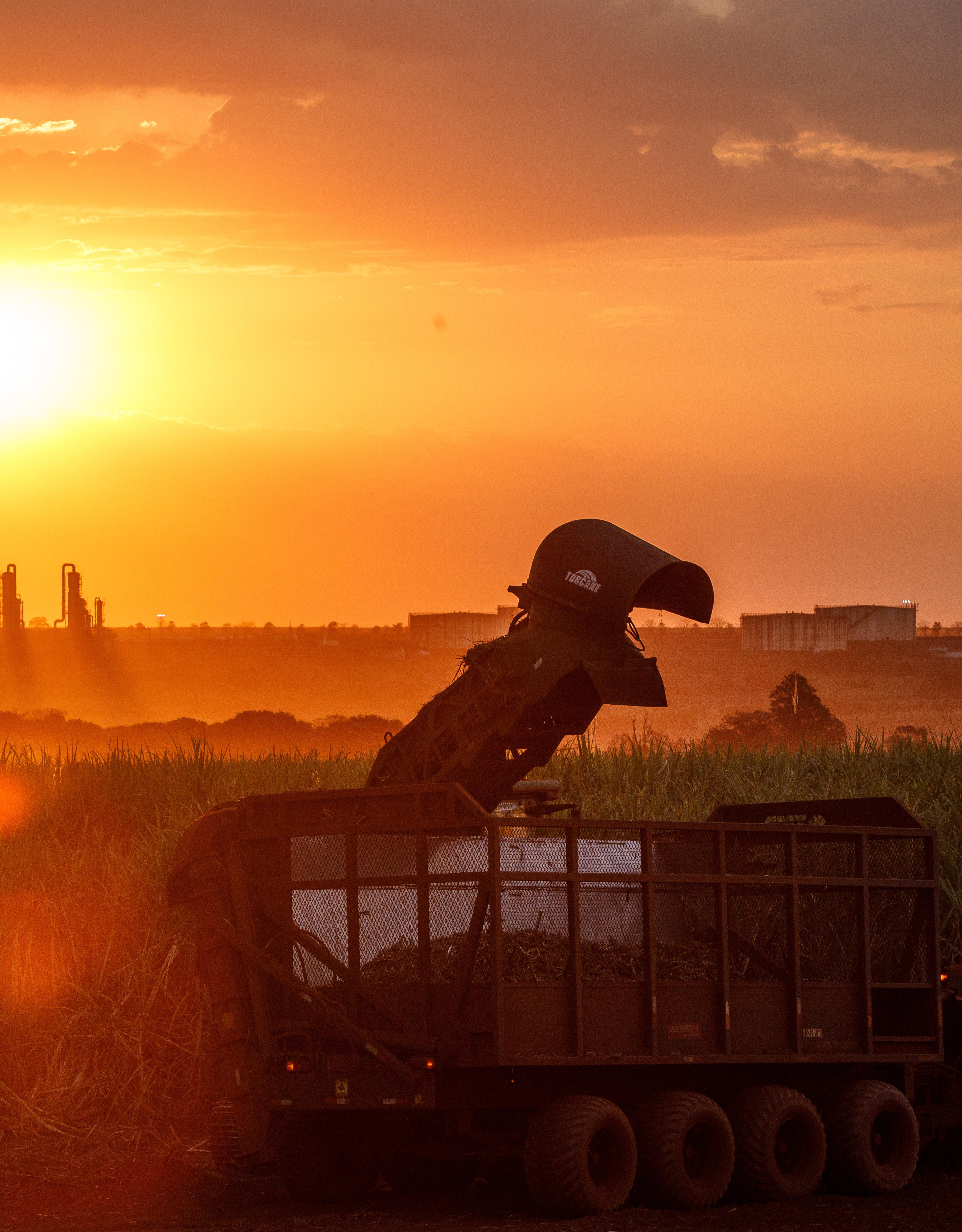 A Cerradão produz açúcar branco e açúcar VHP. Produz, também, etanol anidro e etanol hidratado. A flexibilidade em nosso mix de produção nos permite o direcionamento de até 60% da cana-de-açúcar para fabricação de açúcar ou até 70% para fabricação de etanol. Na atual safra 2023/24, temos uma previsão de moagem de 5,5 milhões de toneladas de cana-de-açúcar.