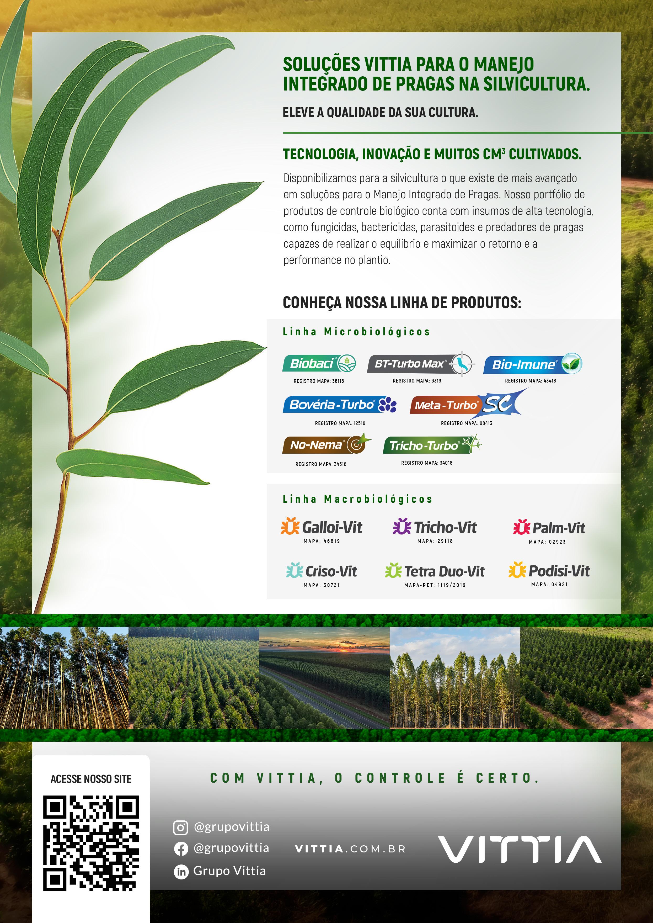 Sobre pesquisas em relação à aplicação de novas técnicas e produtos, há possibilidades de avançarmos em técnicas de monitoramento, em oferta de produtos de origem biológica, em tecnologia de formulações, como o encapsulamento de ativos, entre outras. Entretanto, mesmo quando as novas soluções estiverem disponíveis, a disciplina e o rigor na condução do manejo das formigas-cortadeiras têm que ser mantidos, pois essa é a única maneira de ter êxito no controle desta importante praga, altamente adaptada às condições adequadas às plantações florestais do Brasil. n
