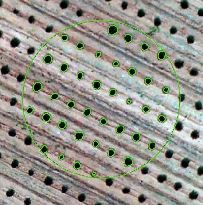 O imageamento fornece informações importantes sobre a qualidade do povoamento como percentual de sobrevivência, vigor (m²/copa), infestação de matocompetição, e eles possuem correlação direta com os dados levantados no controle de qualidade convencional.
