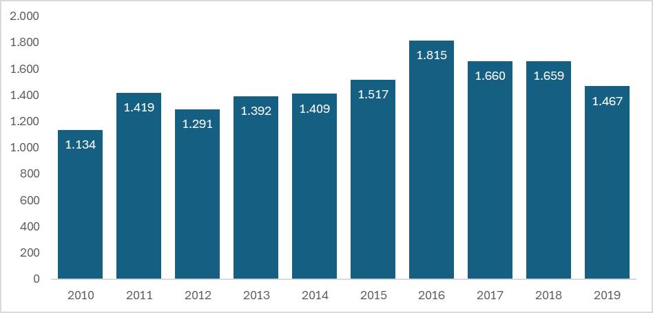 O descompasso entre a oferta de mão de obra e o crescimento do setor florestal é evidente. A formação de engenheiros e técnicos florestais tem diminuído nos últimos anos, conforme apontam diversas pesquisas acadêmicas, demonstradas no gráfico 2, Formandos em Engenharia Florestal no Brasil.