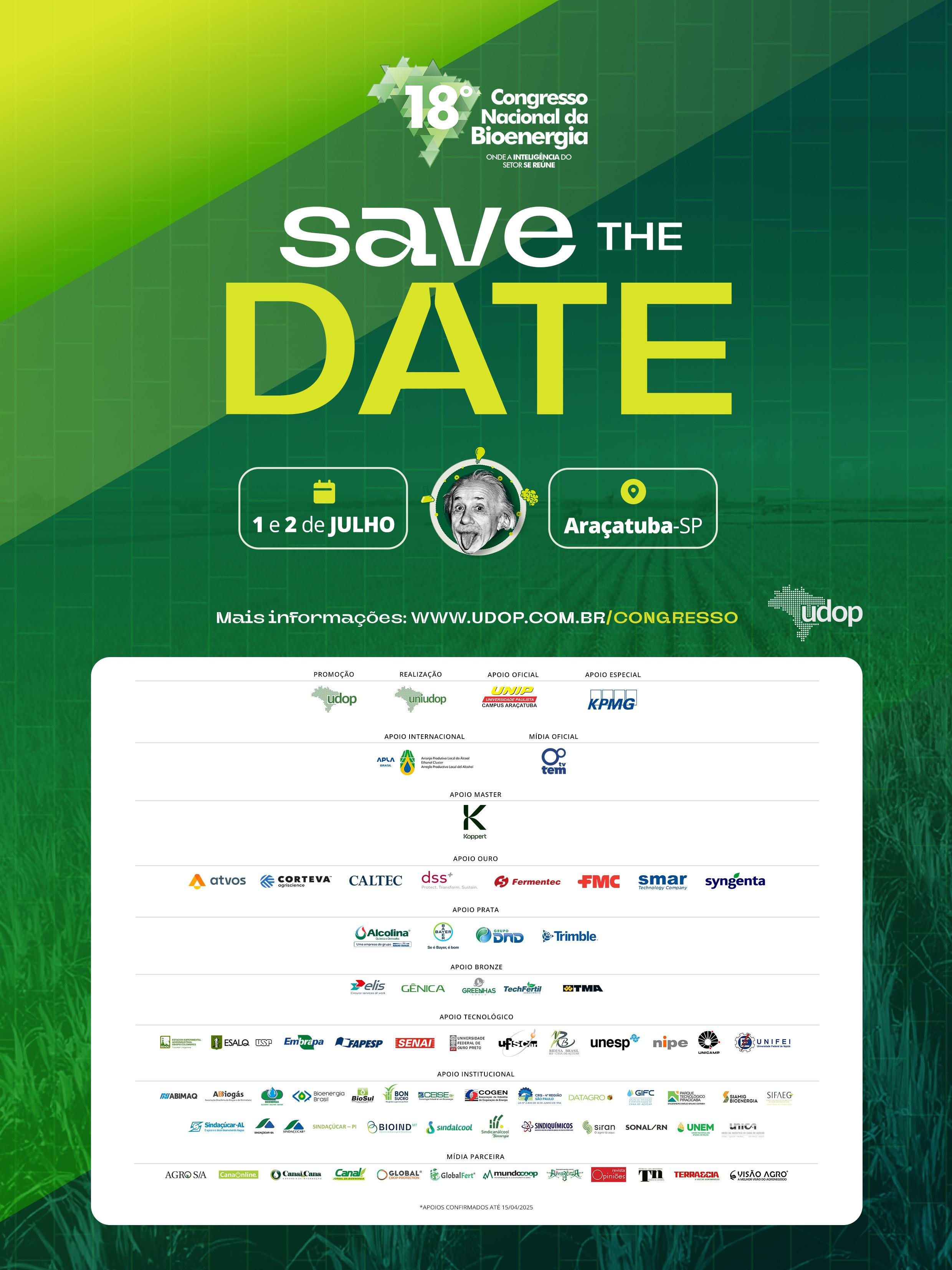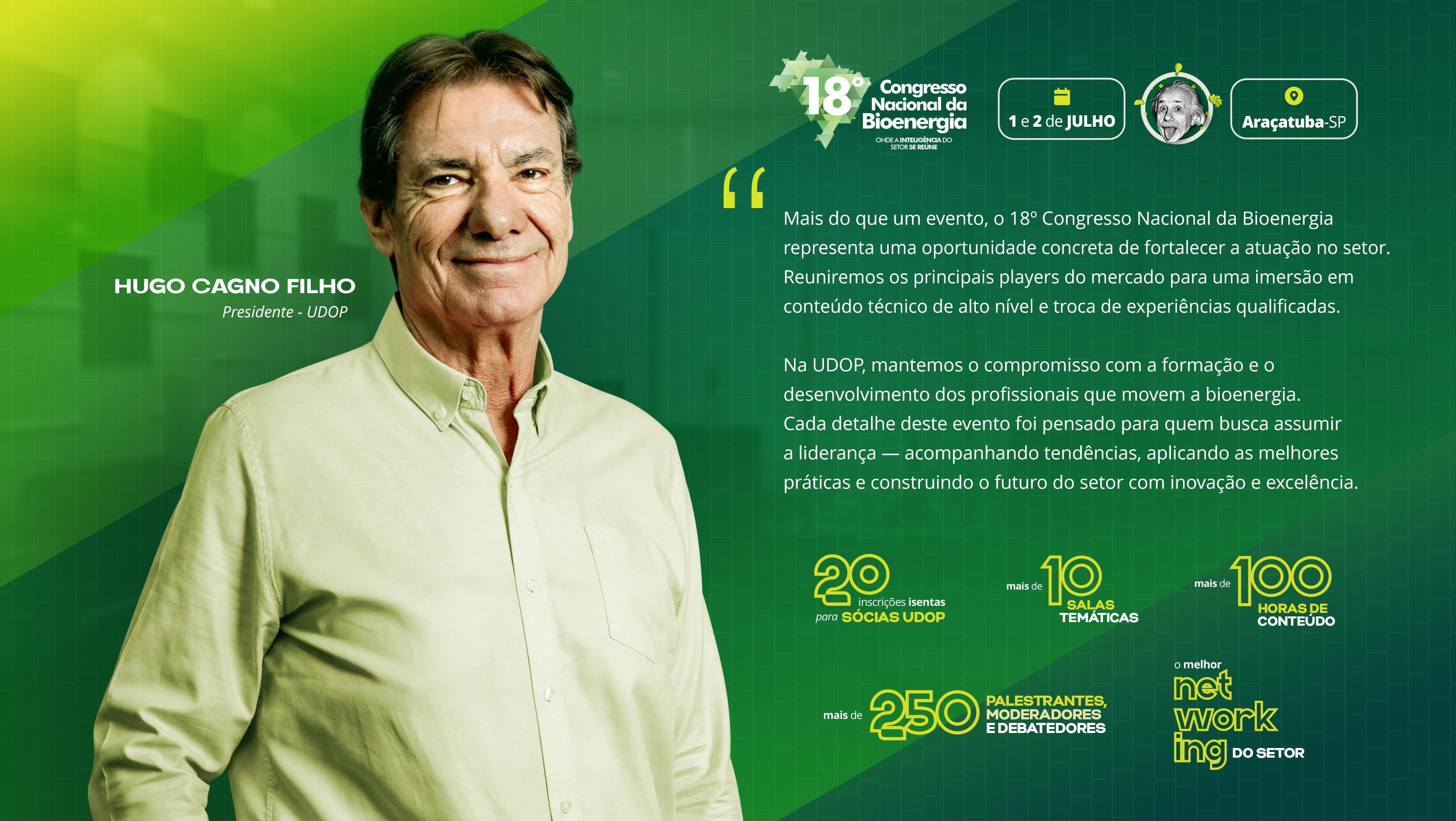 Nesse campo, nós, da UDOP União Nacional da Bioenergia, temos nos empenhado em manter a qualidade de nossos eventos, reunindo milhares de profissionais da cadeia bioenergética para disseminar boas práticas e novas tecnologias capazes de aumentar nossa produtividade na mesma área o chamado crescimento vertical , o que fortalece a competitividade de nossas agroindústrias.