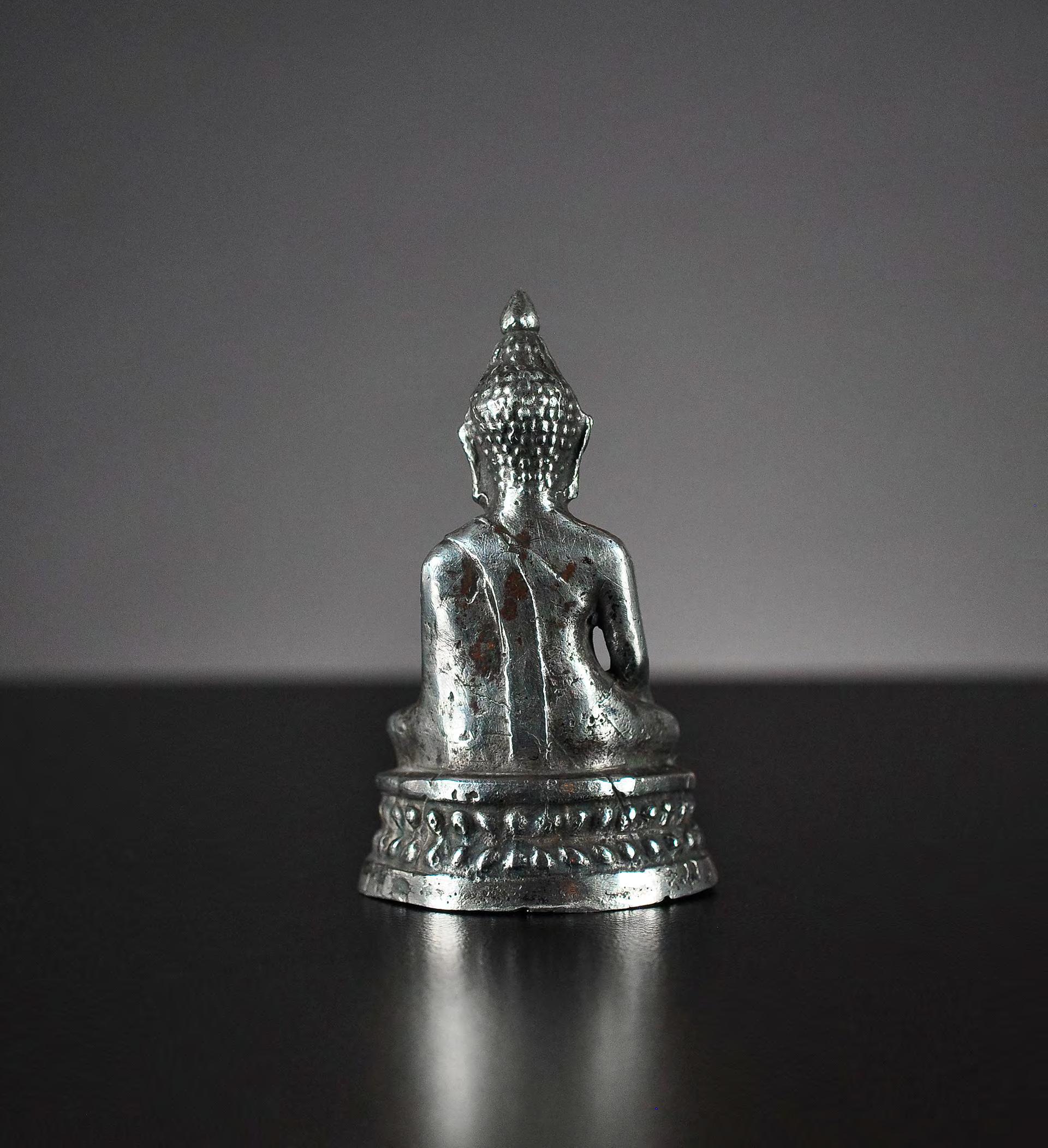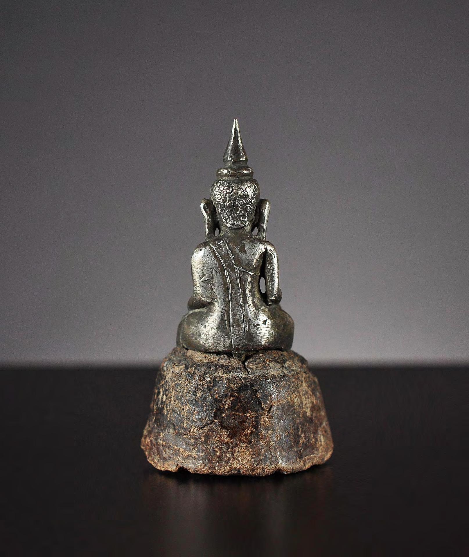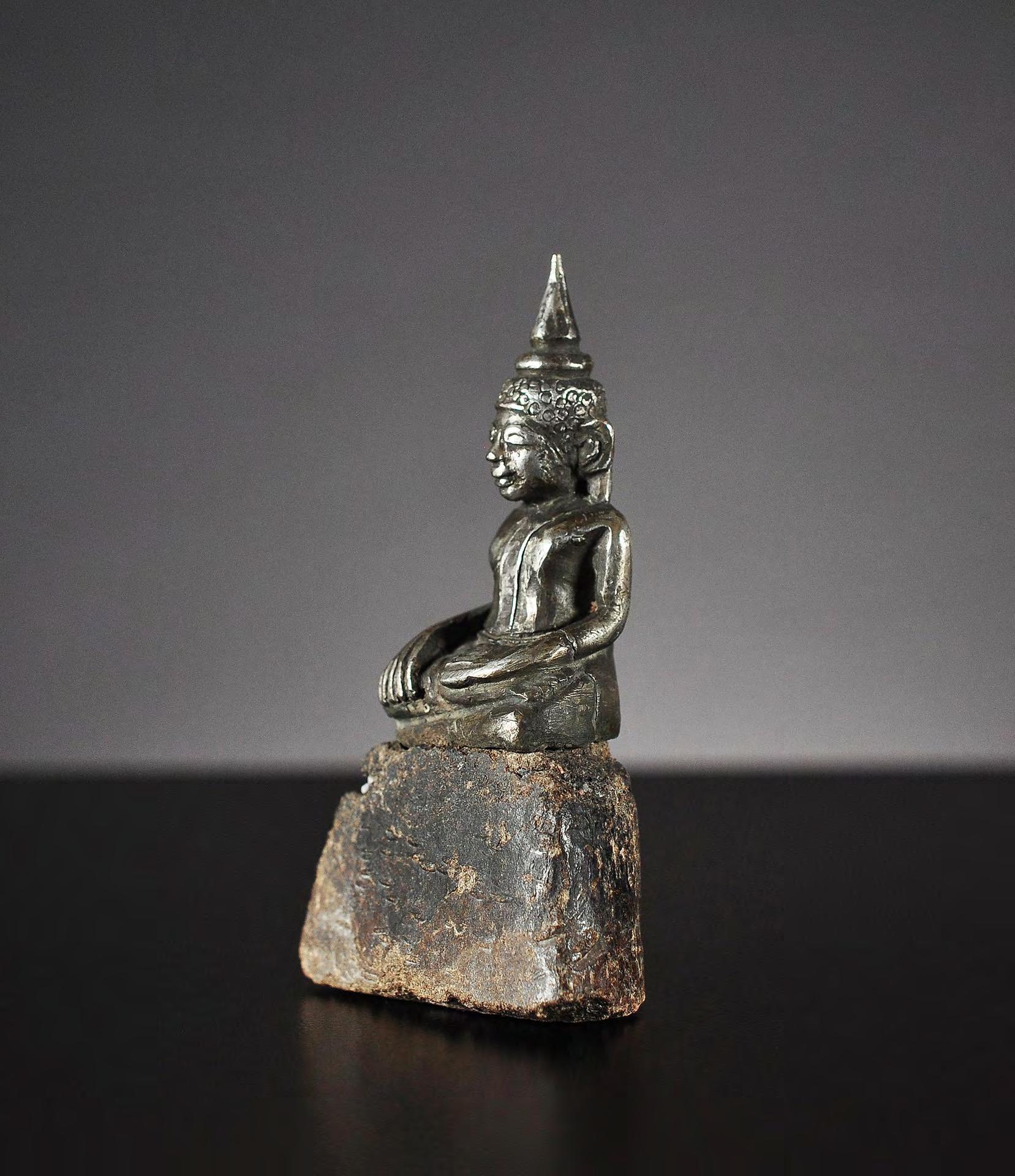 6 Seated miniature Buddha statue, silver alloy, Northern Thailand / Laos, 19th century or earlier