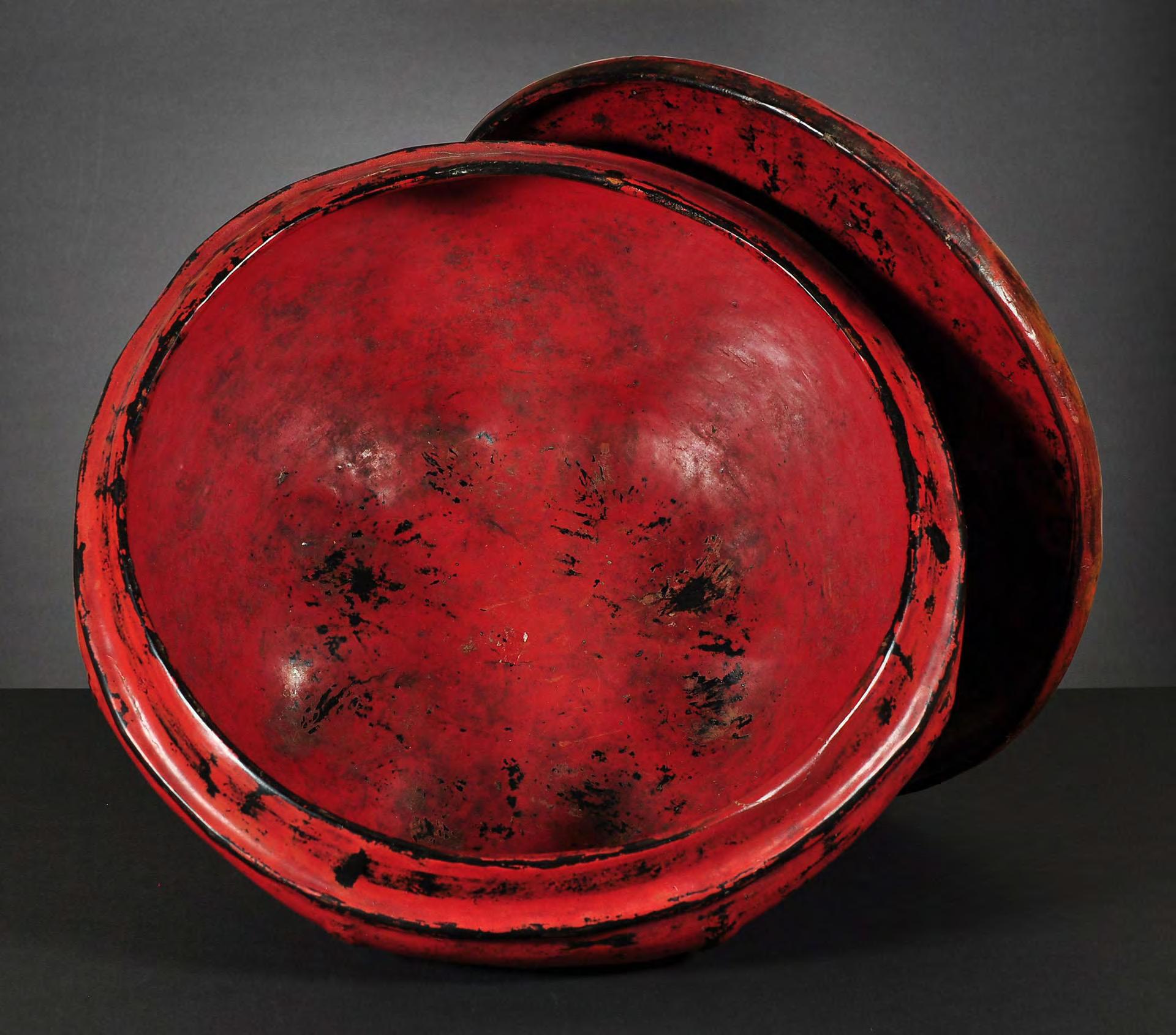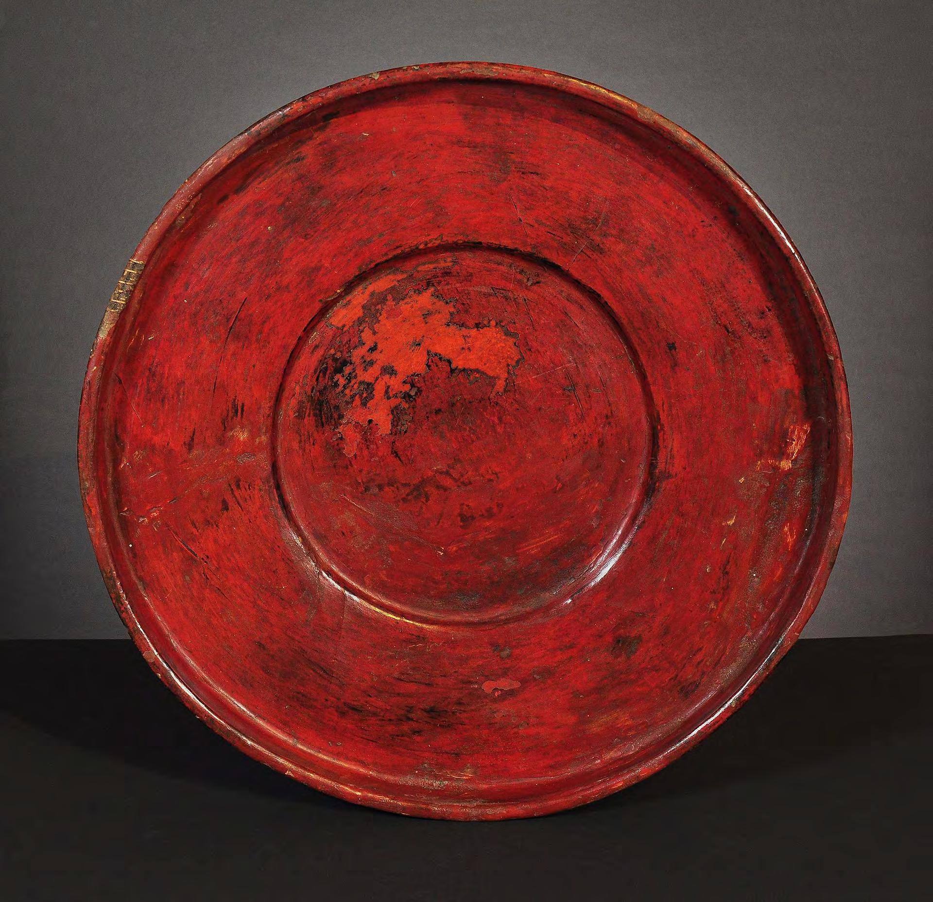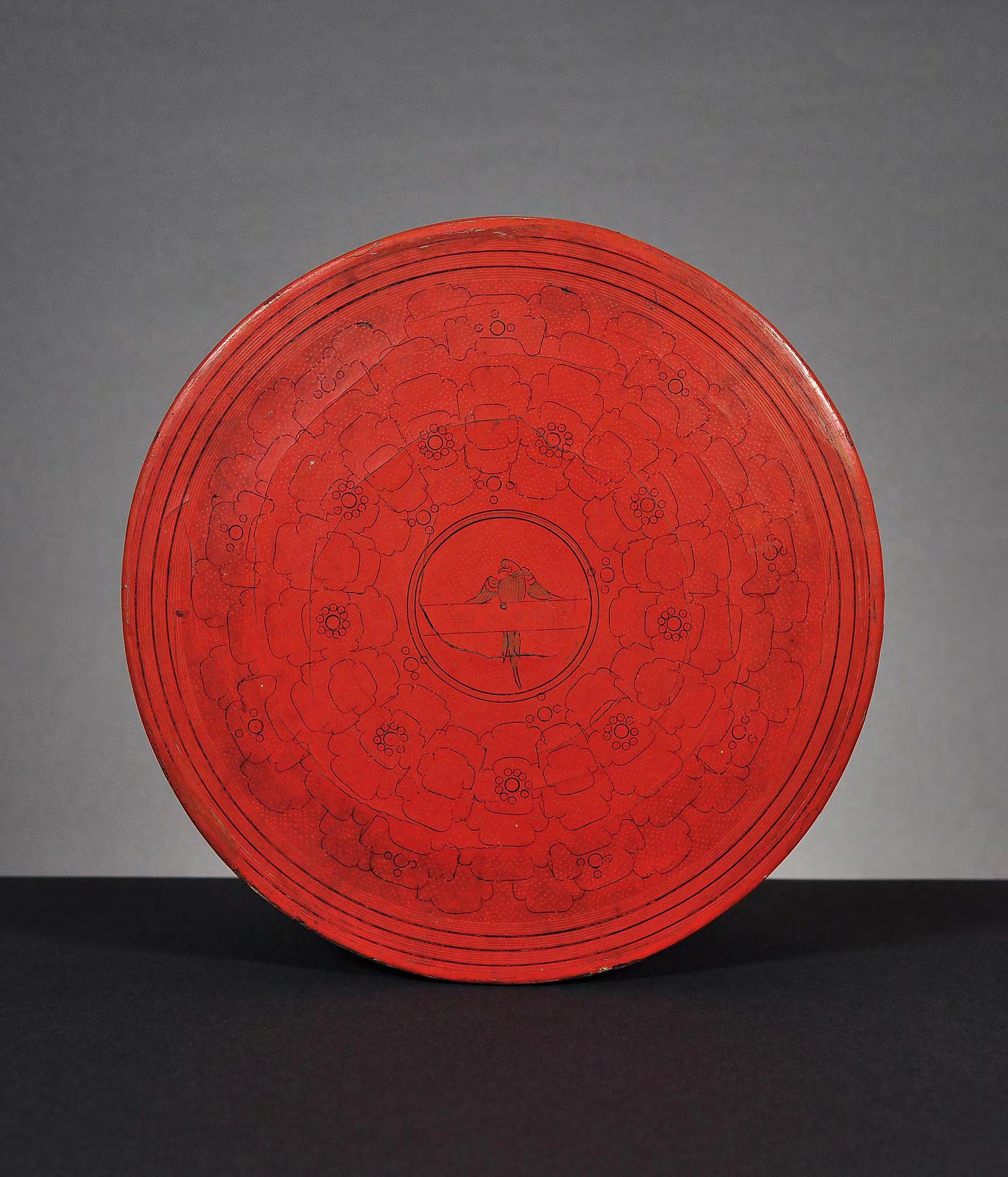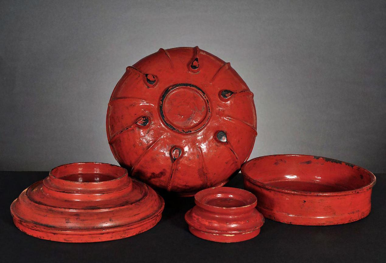 condition: one gilded main page with lotus bud decoration is missing, some edges and holes are restored with red lacquer