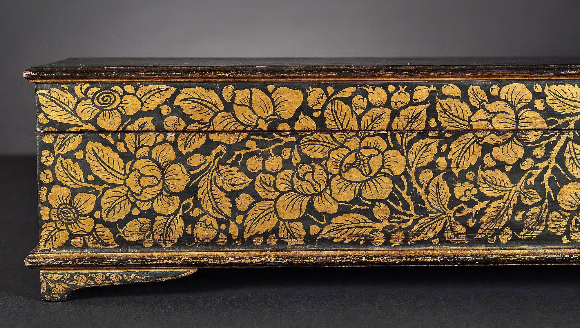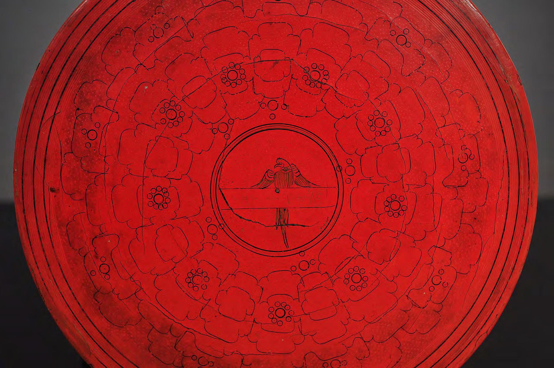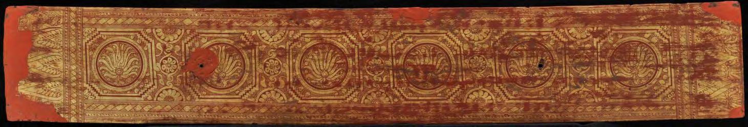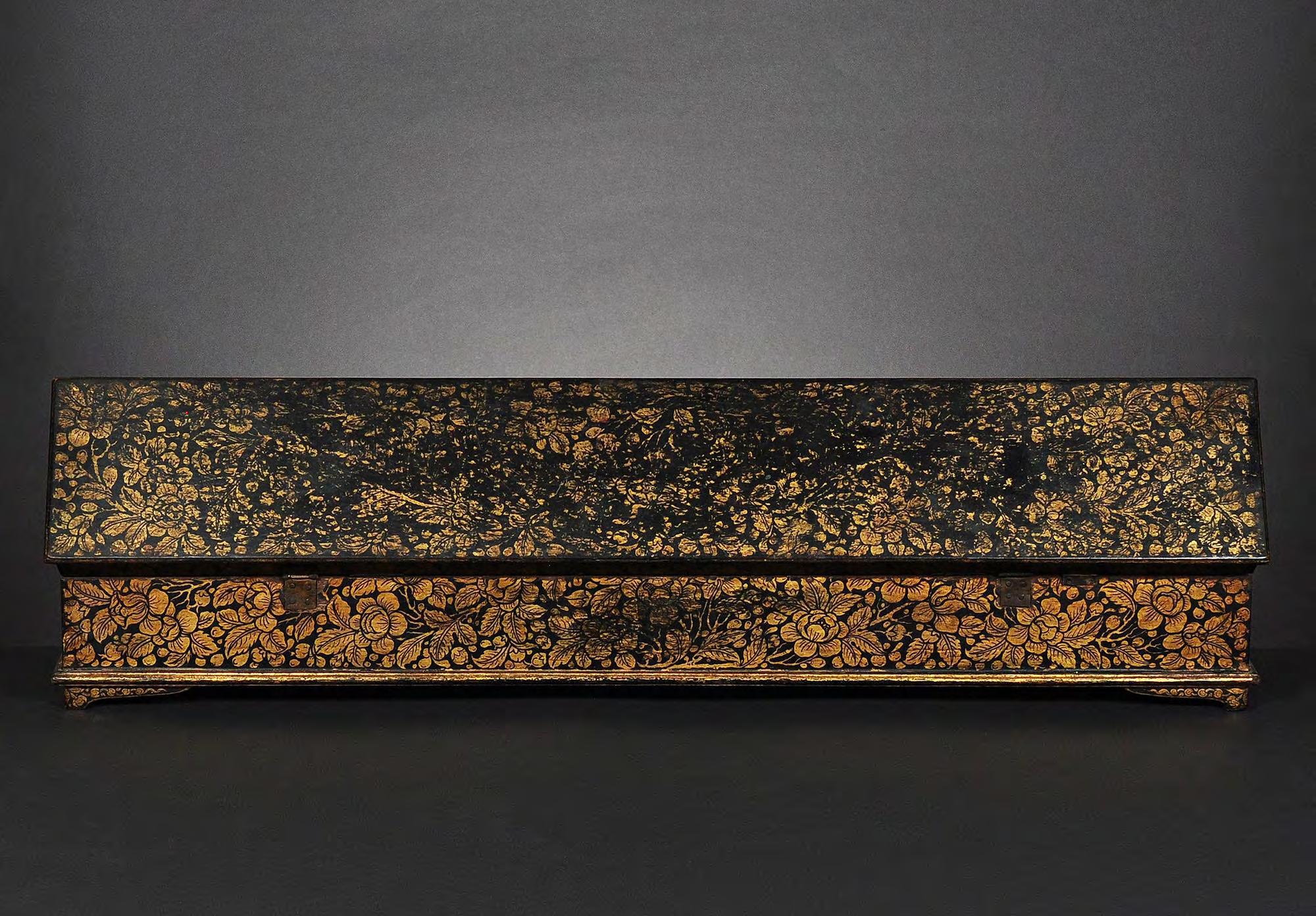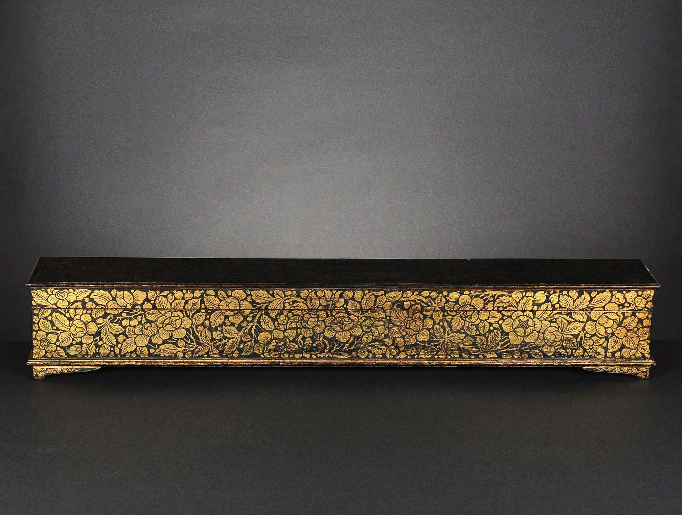 condition: one gilded main page with lotus bud decoration is missing, some edges and holes are restored with red lacquer