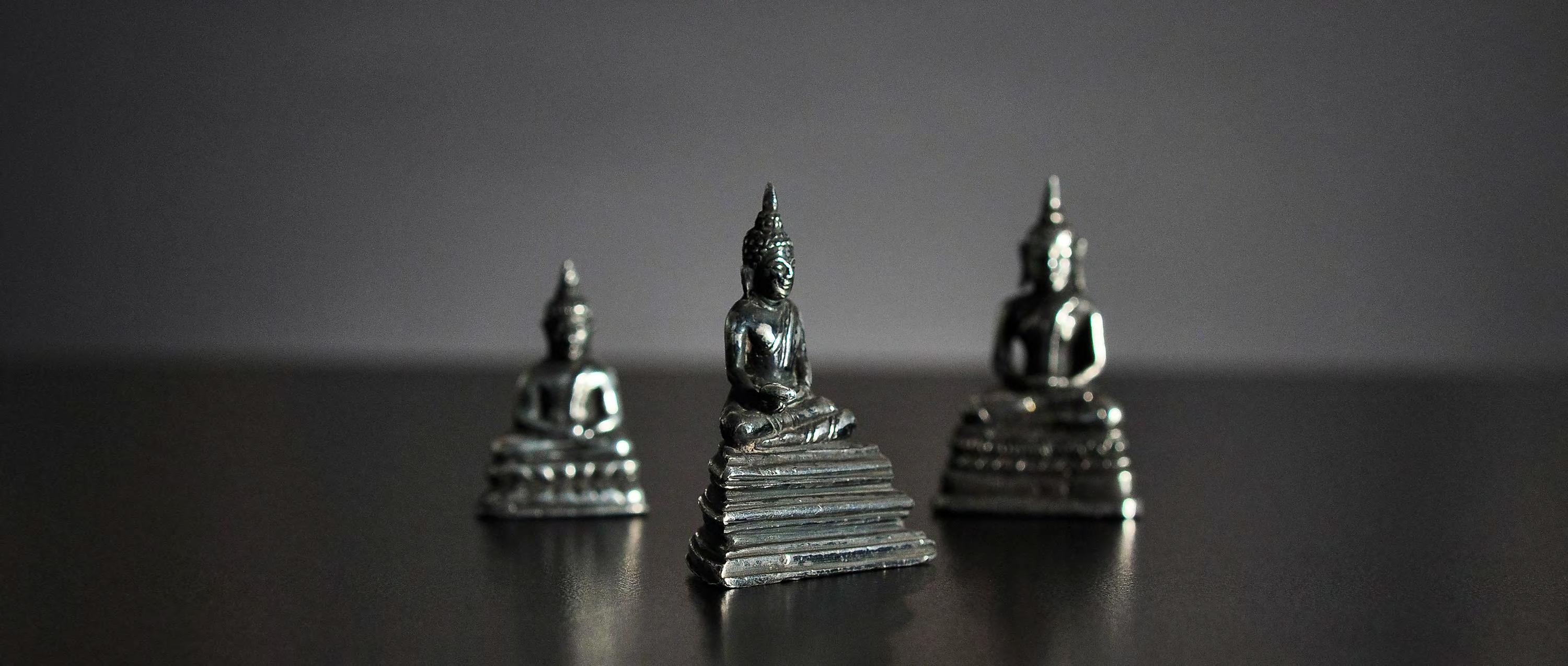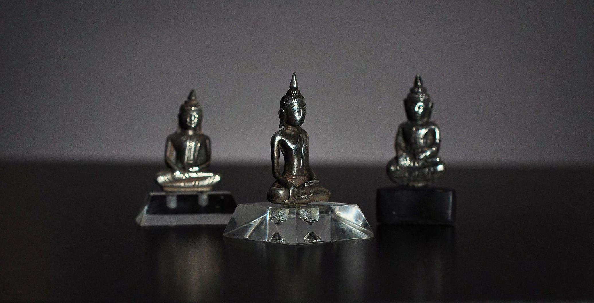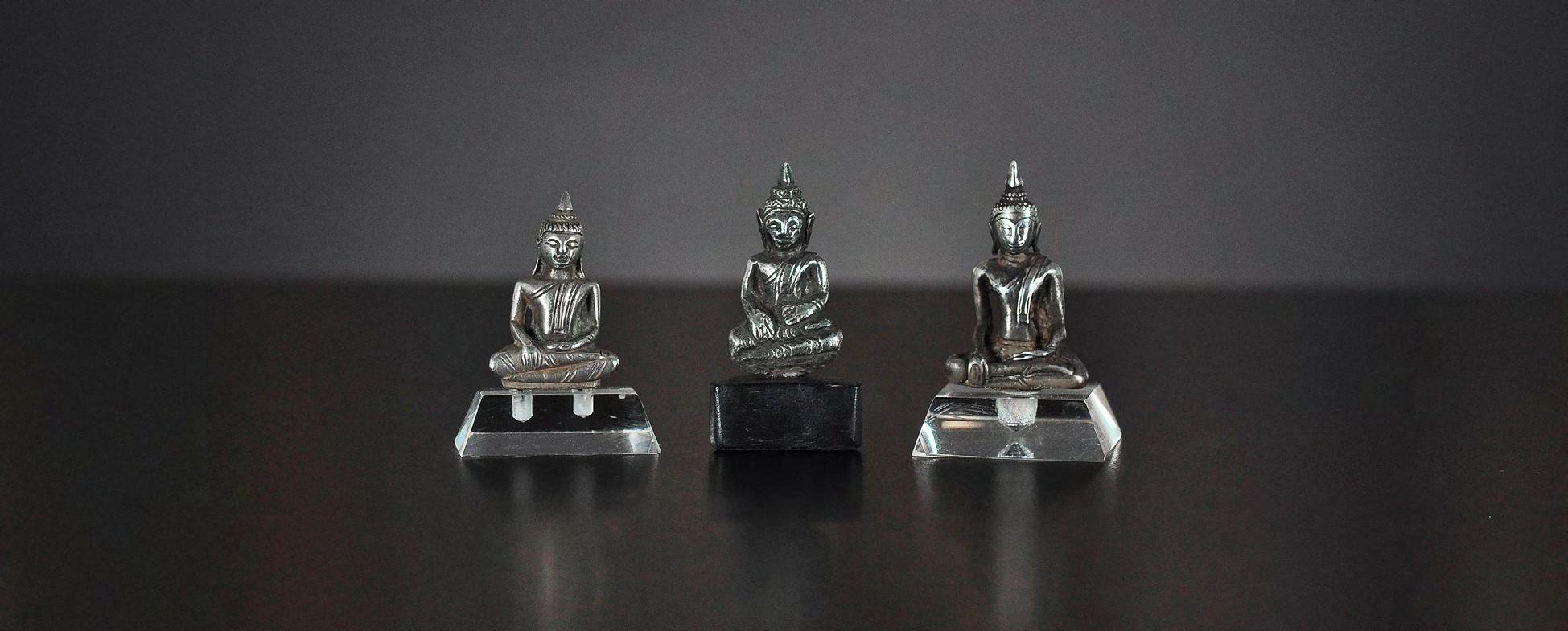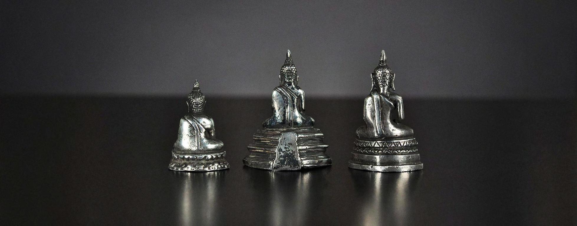 9 Three seated miniature Buddha statues, silver alloy, Thailand, 19th century