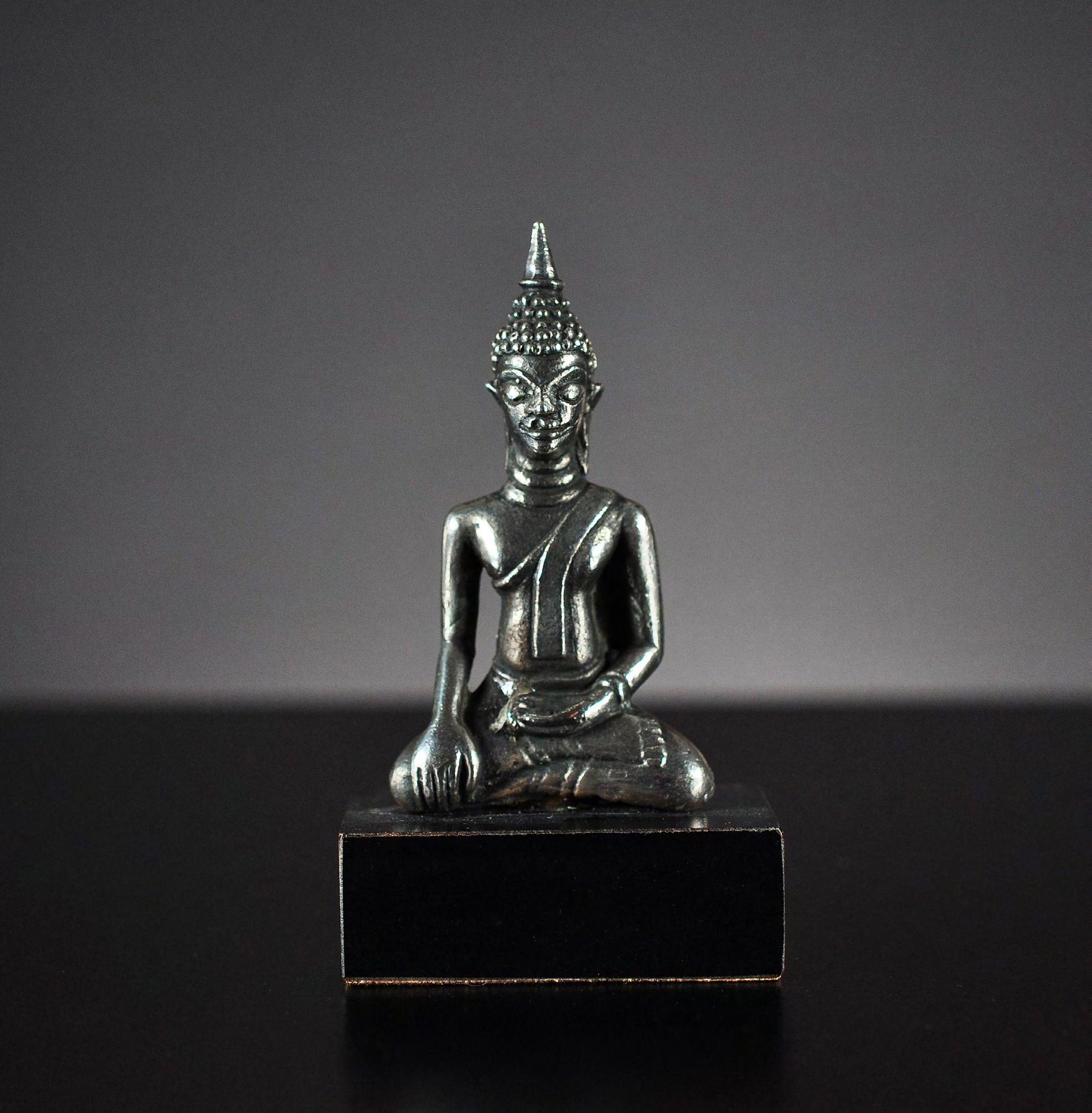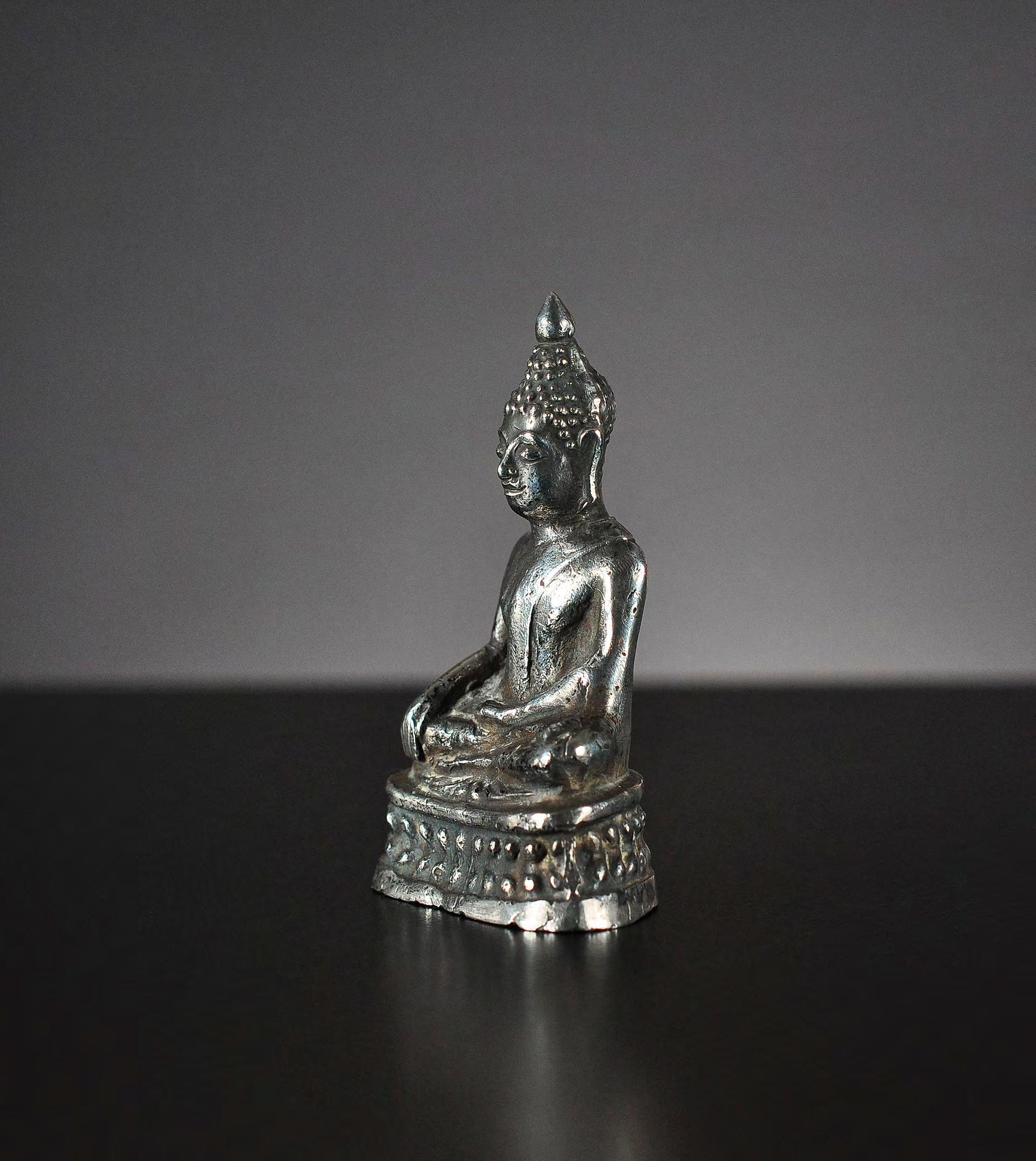 5 Seated miniature Buddha statue, silver alloy, Thailand / Laos, 19th century
