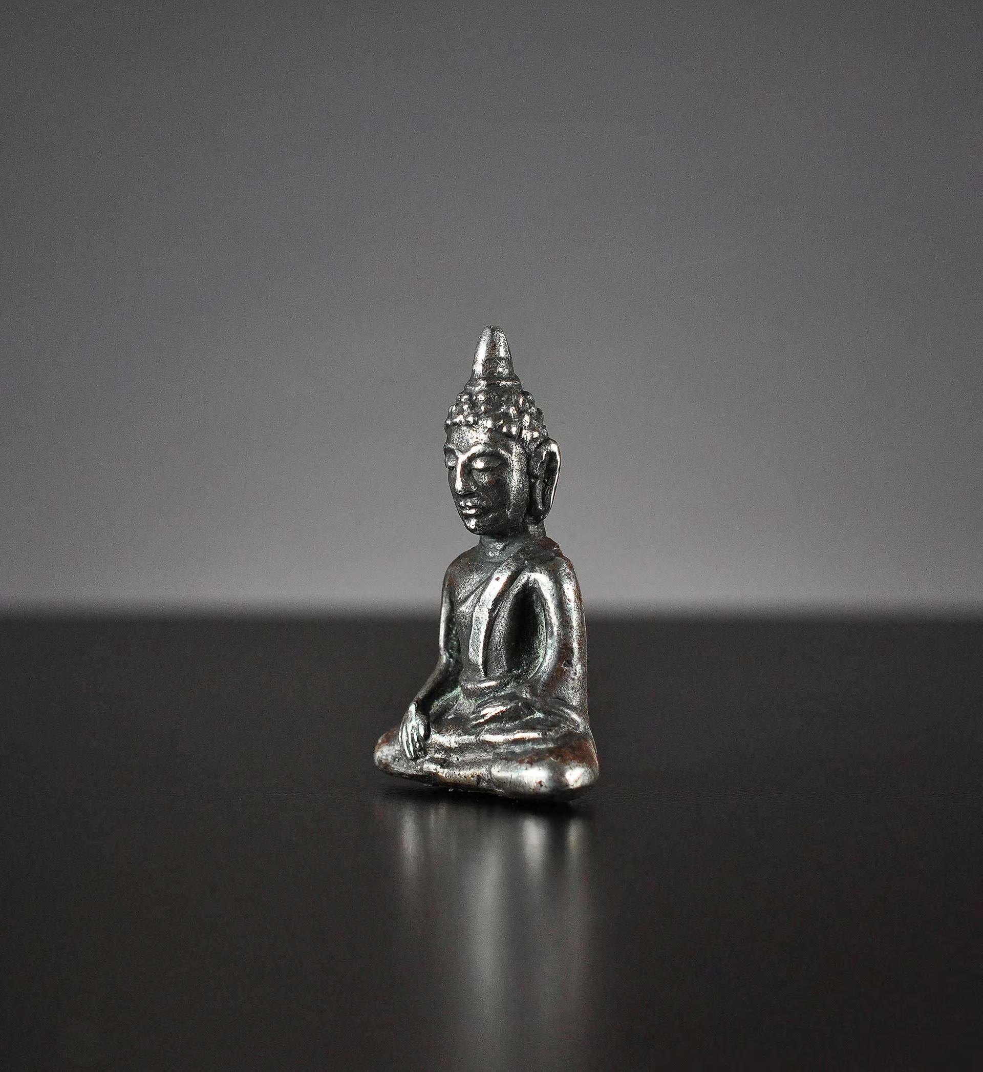 From an old Munich collection we acquired a group of superb miniature Buddha statues, made of silver (a few of high-grade silver others of an alloy with low silver content). They originate from different eras and regions throughout Southeast Asia.