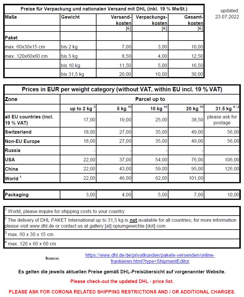 price: 1’547 Euro (incl. 19 % VAT plus packaging and shipping) 1’300 Euro (VAT free for delivery outside European Union)