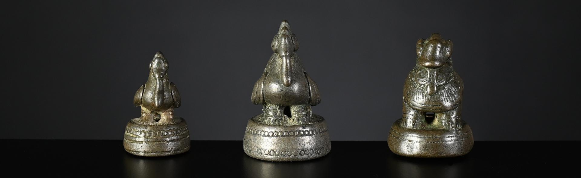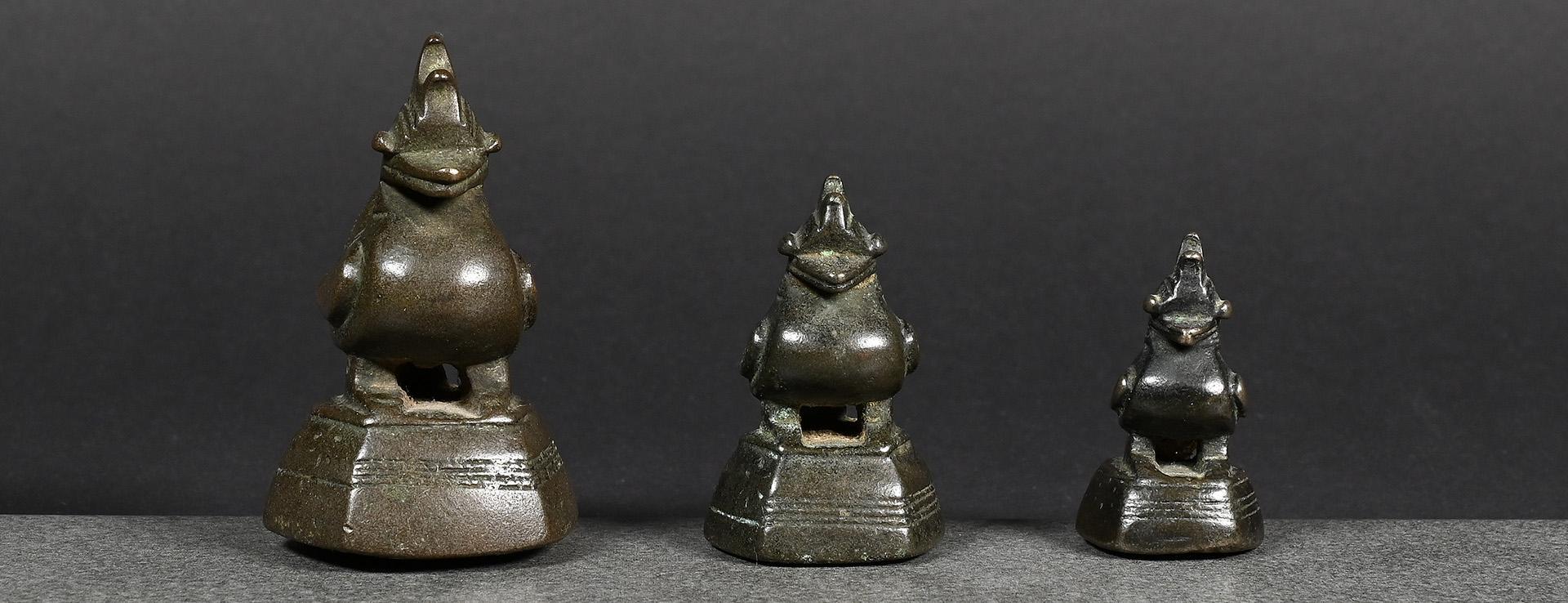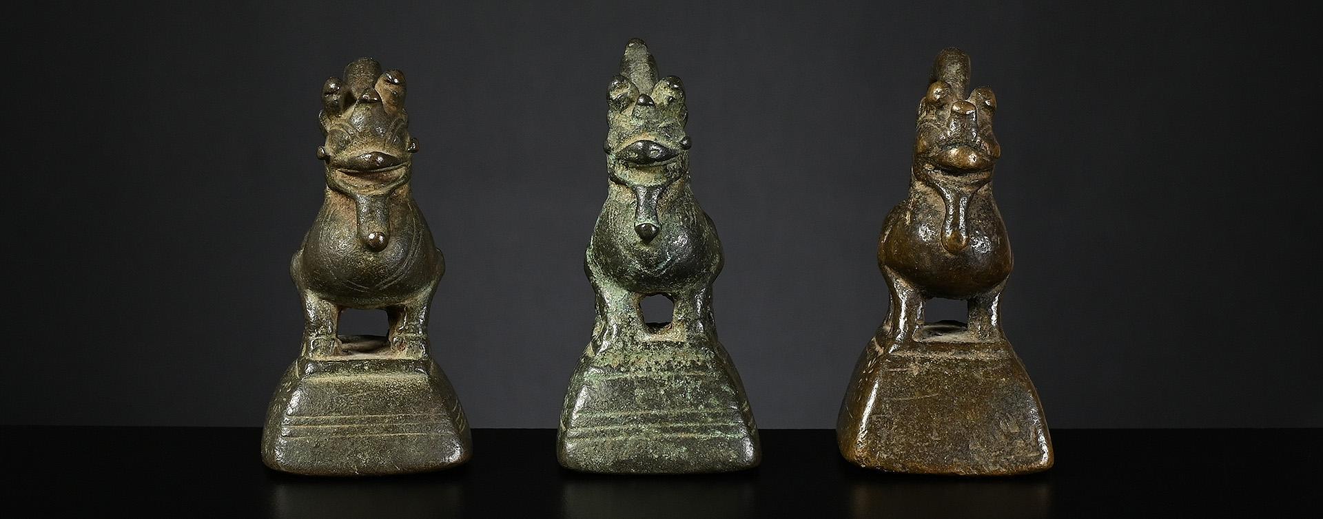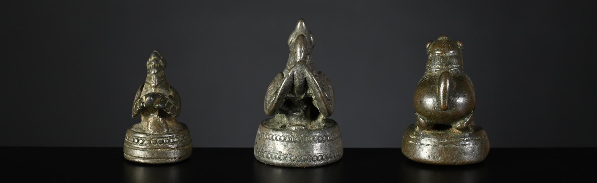 c) nice silvery bronze with clearly visible verification mark, very good condition weight: 10 tical / 162 grams height: 52 mm verification mark: perfectly incised bird symbol price: sold