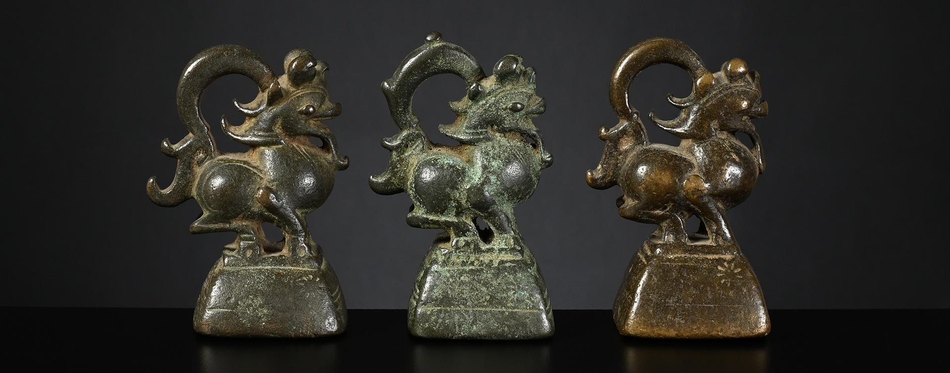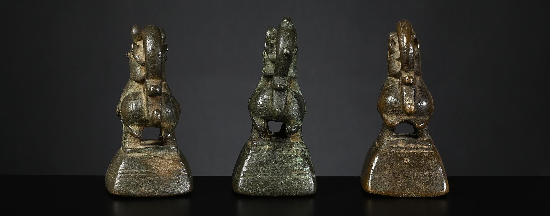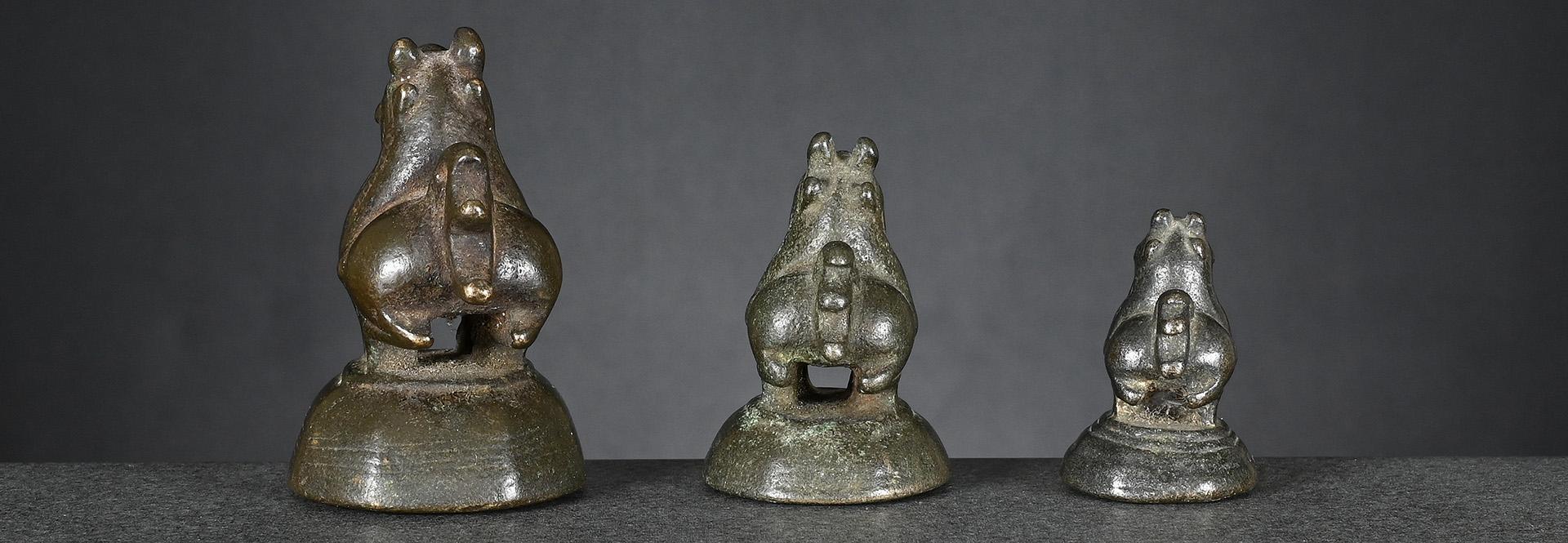 c) nice silvery bronze with clearly visible verification mark, very good condition weight: 10 tical / 162 grams height: 52 mm verification mark: perfectly incised bird symbol price: sold