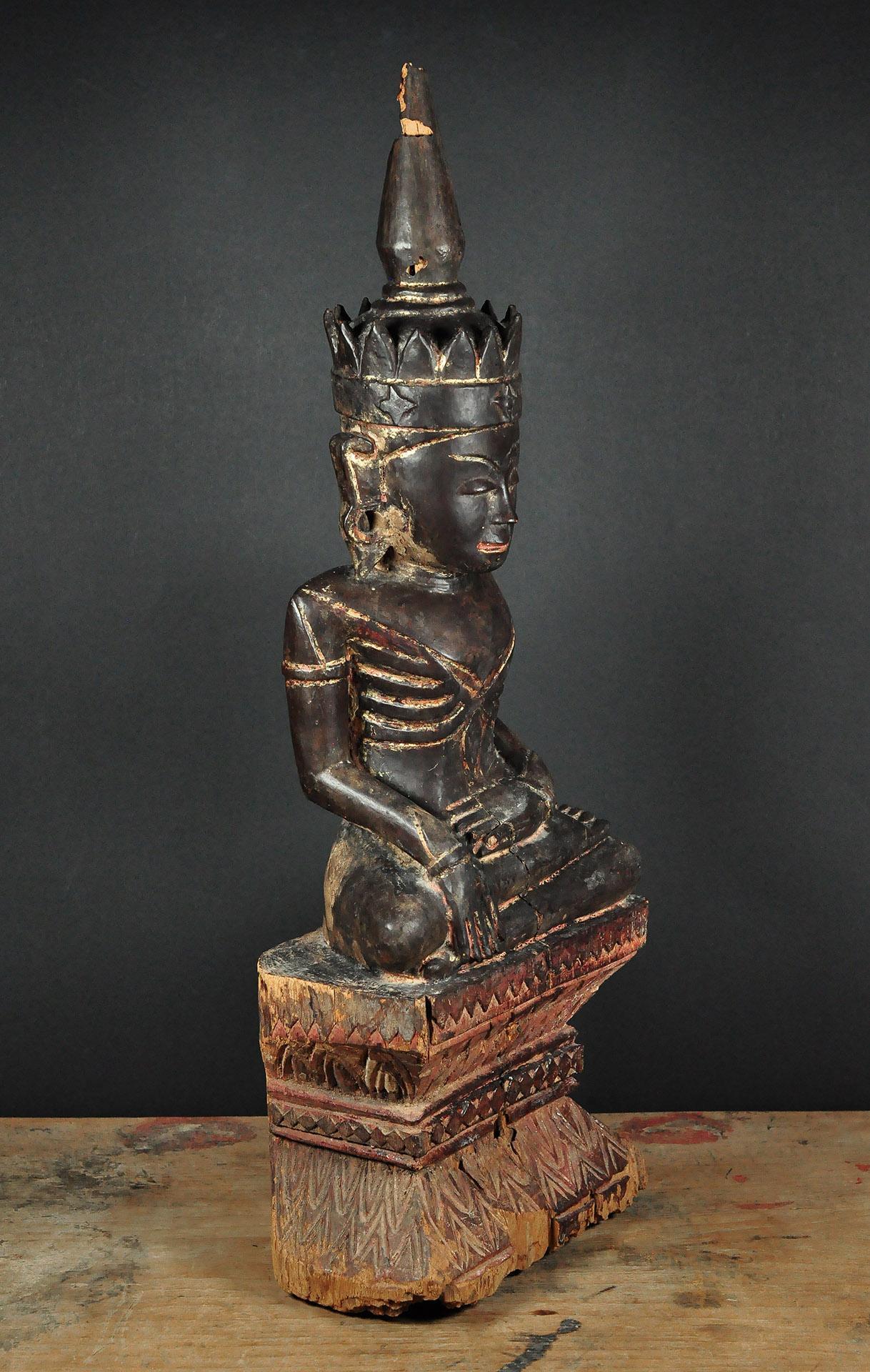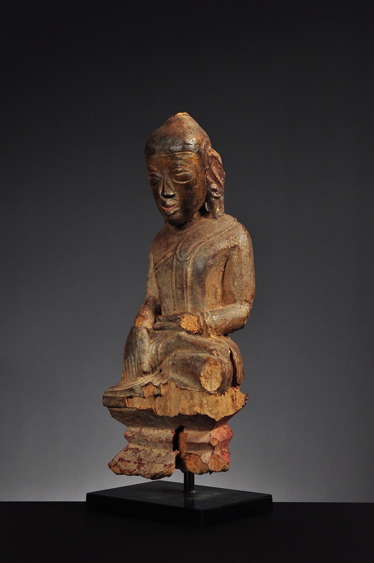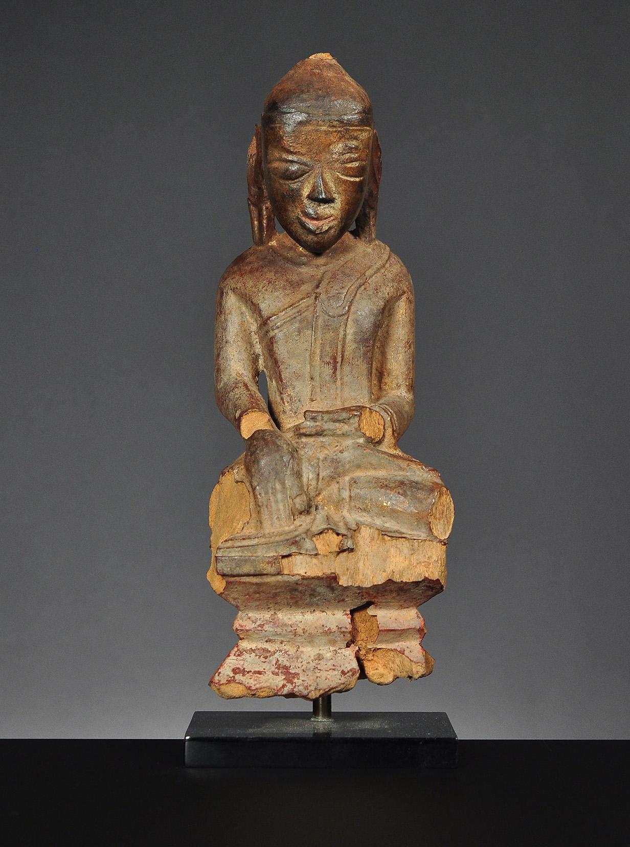 3 A wooden figure of seated Buddha Shakyamuni, Amarapura period, Burma, 1st half of 19th century