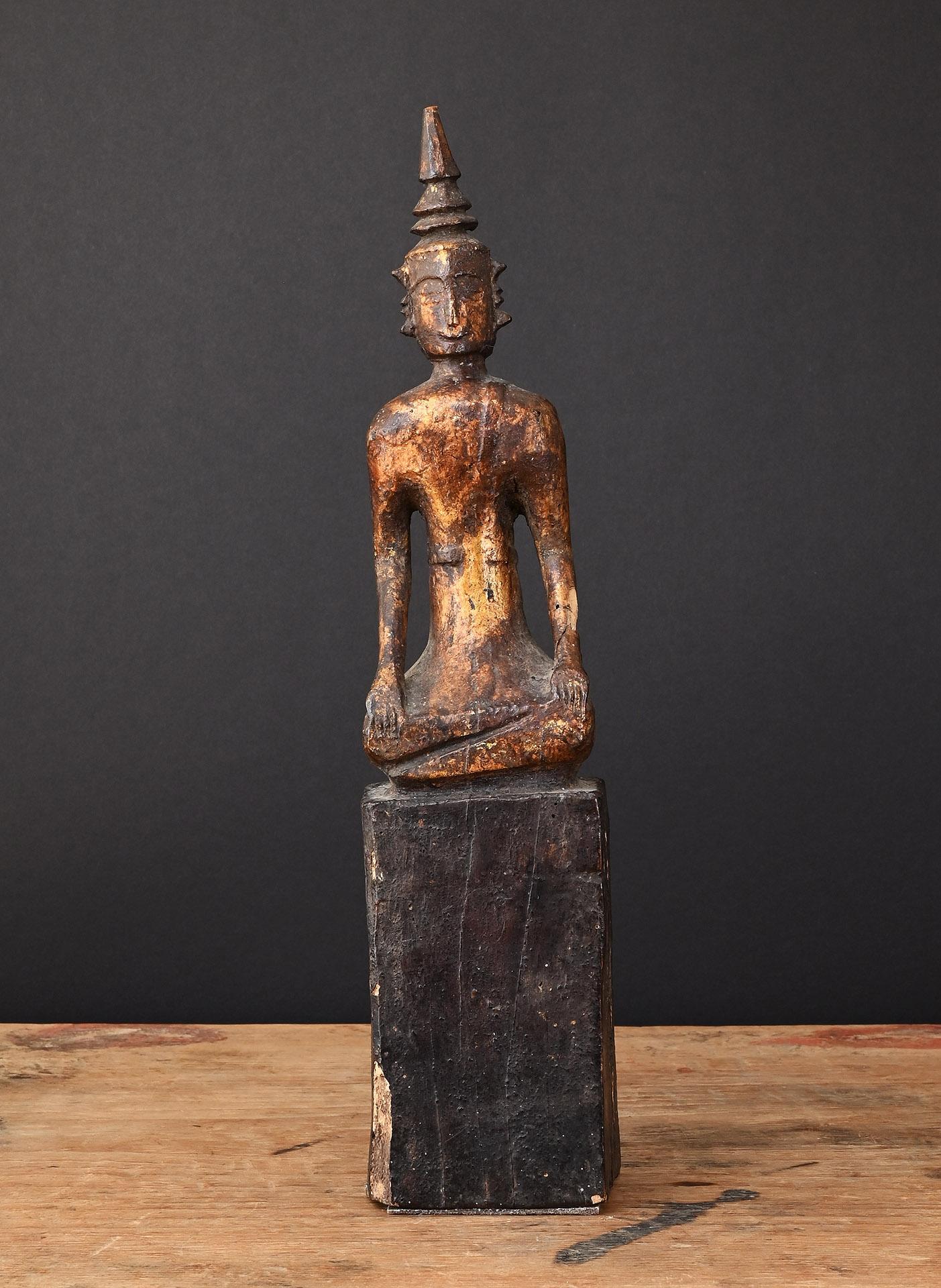 8 Small wooden figure of the seated Buddha Shakyamuni, Laos, 19th century