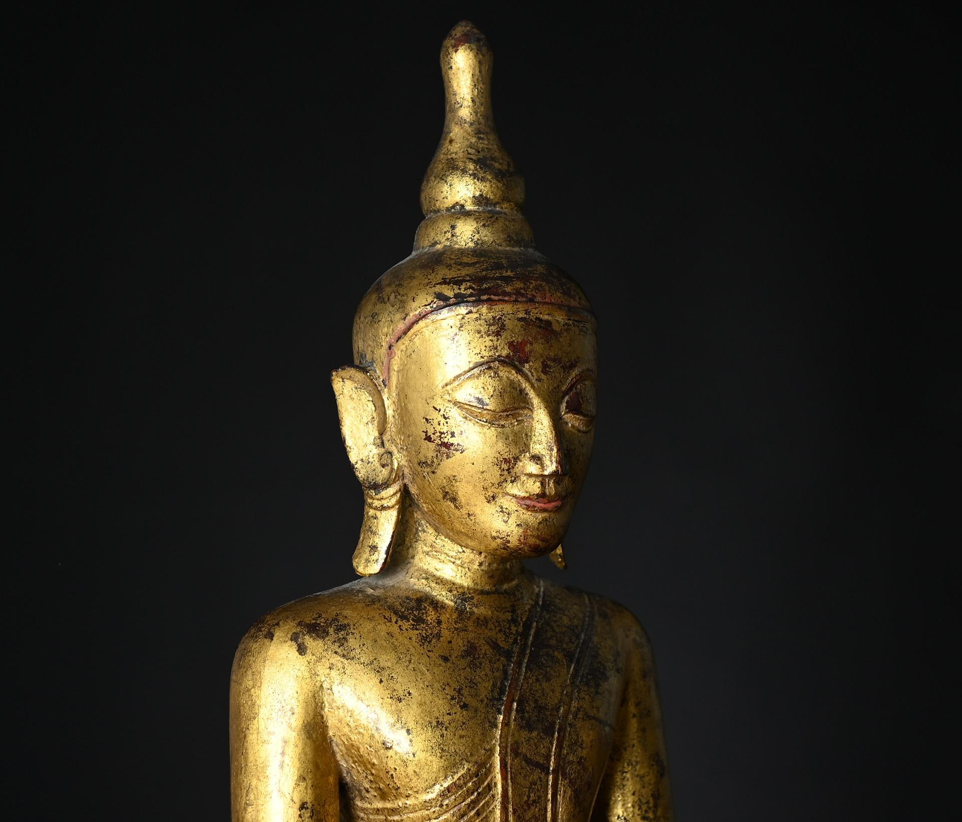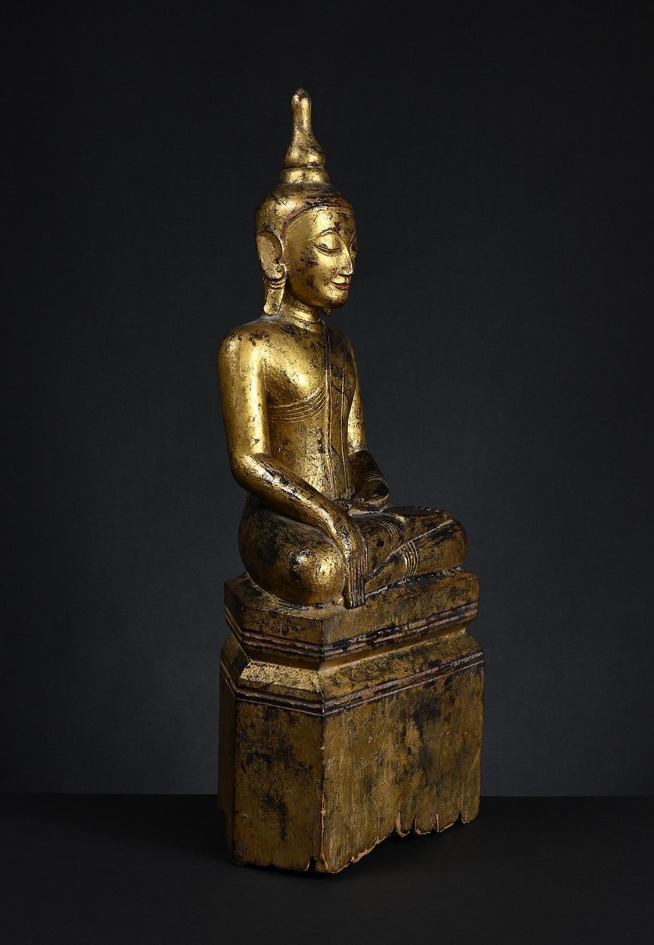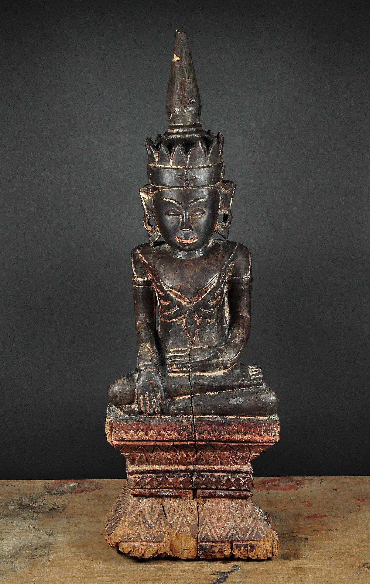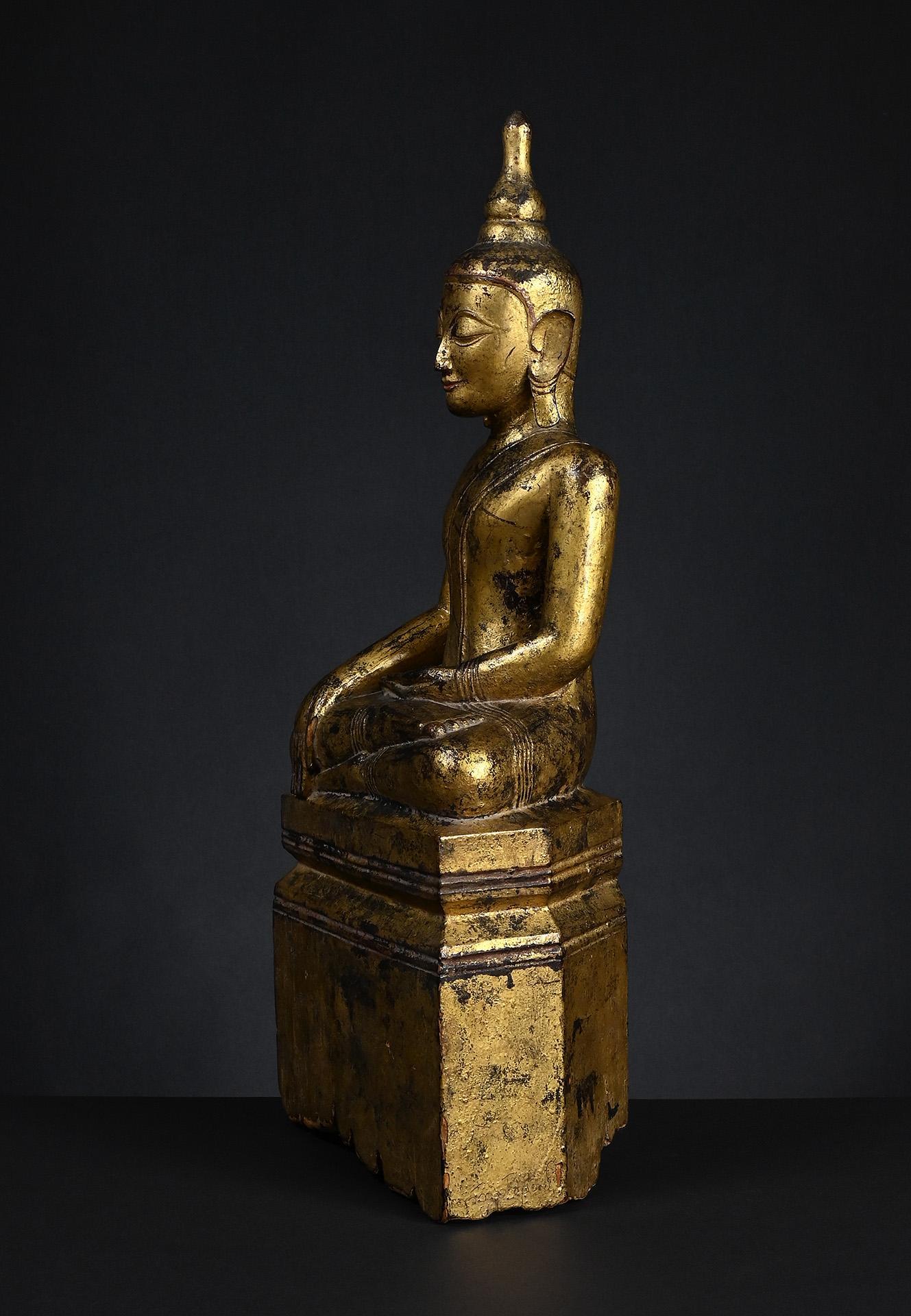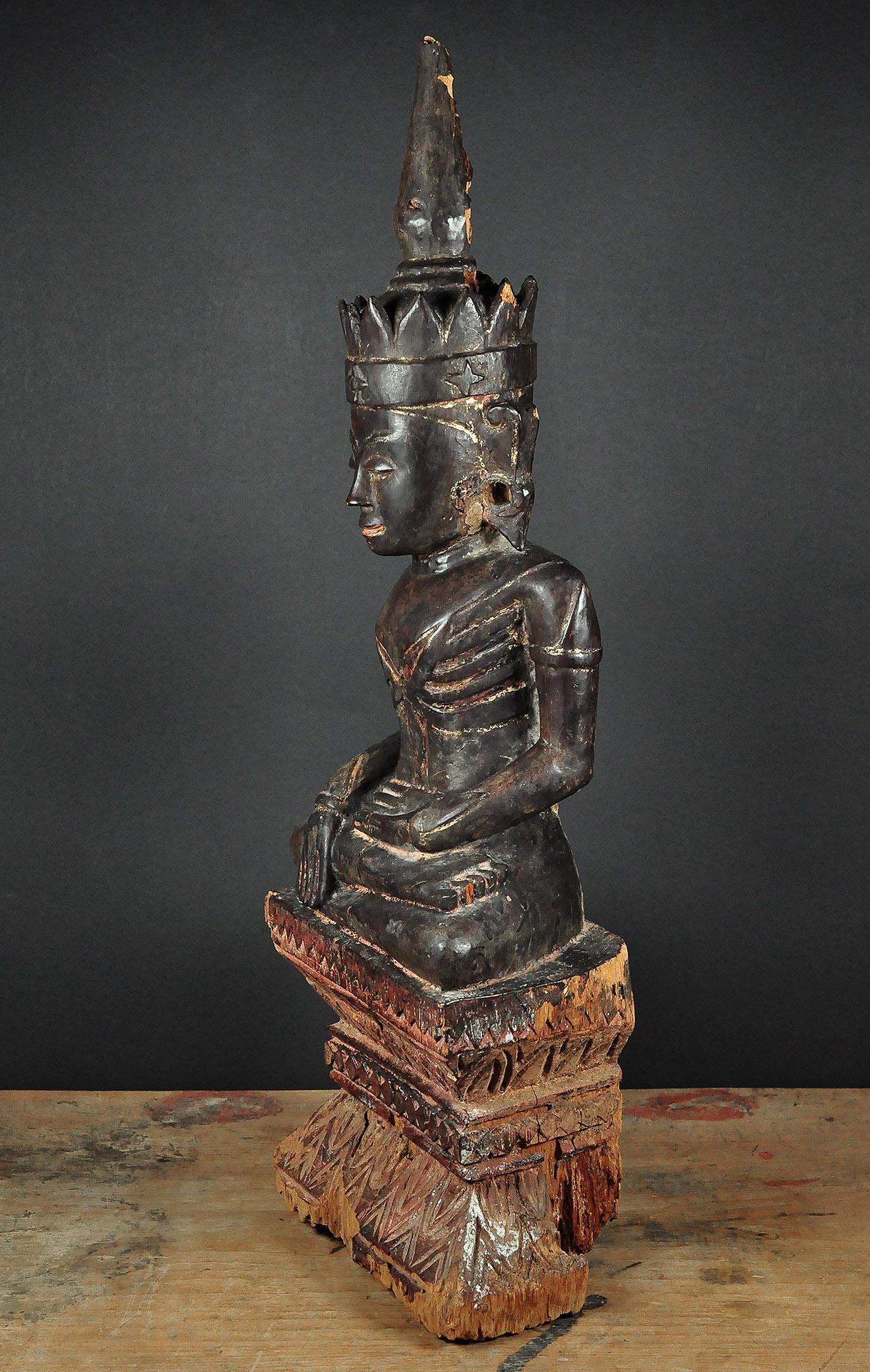 Wooden figure of the seated Buddha Shakyamuni Tai Yai, Shan State, Burma