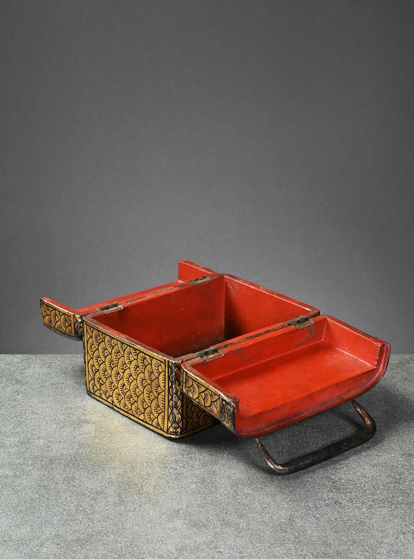 Interesting wooden folk art sculpture of the Buddha from Laos with various layers of lacquer coating in red and black, and with gold pigments. condition: chipped, losses of lacquer, wear and tear height: 183 mm base: 84 x 60 mm reference: Somkiart Lopetcharat, Lao Buddha, The Image and its History, Siam International Book Company Ltd., 2000, pp. 260 - 266 price: 85 Euro (incl. 7 % VAT plus packaging and shipping)