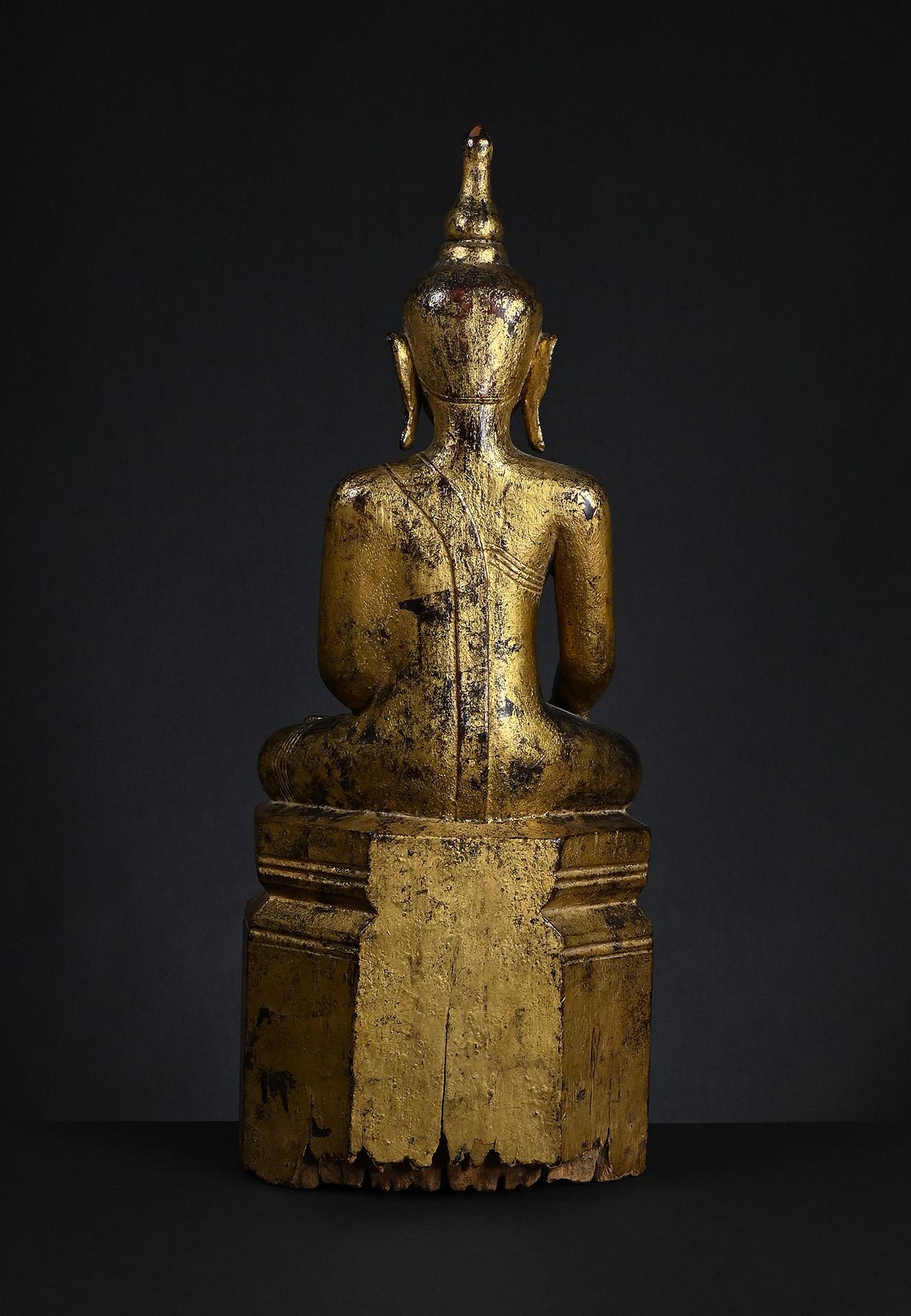 7 Wooden figure of the seated Buddha Shakyamuni in the rare “open lotus” position, Laos, around 1900