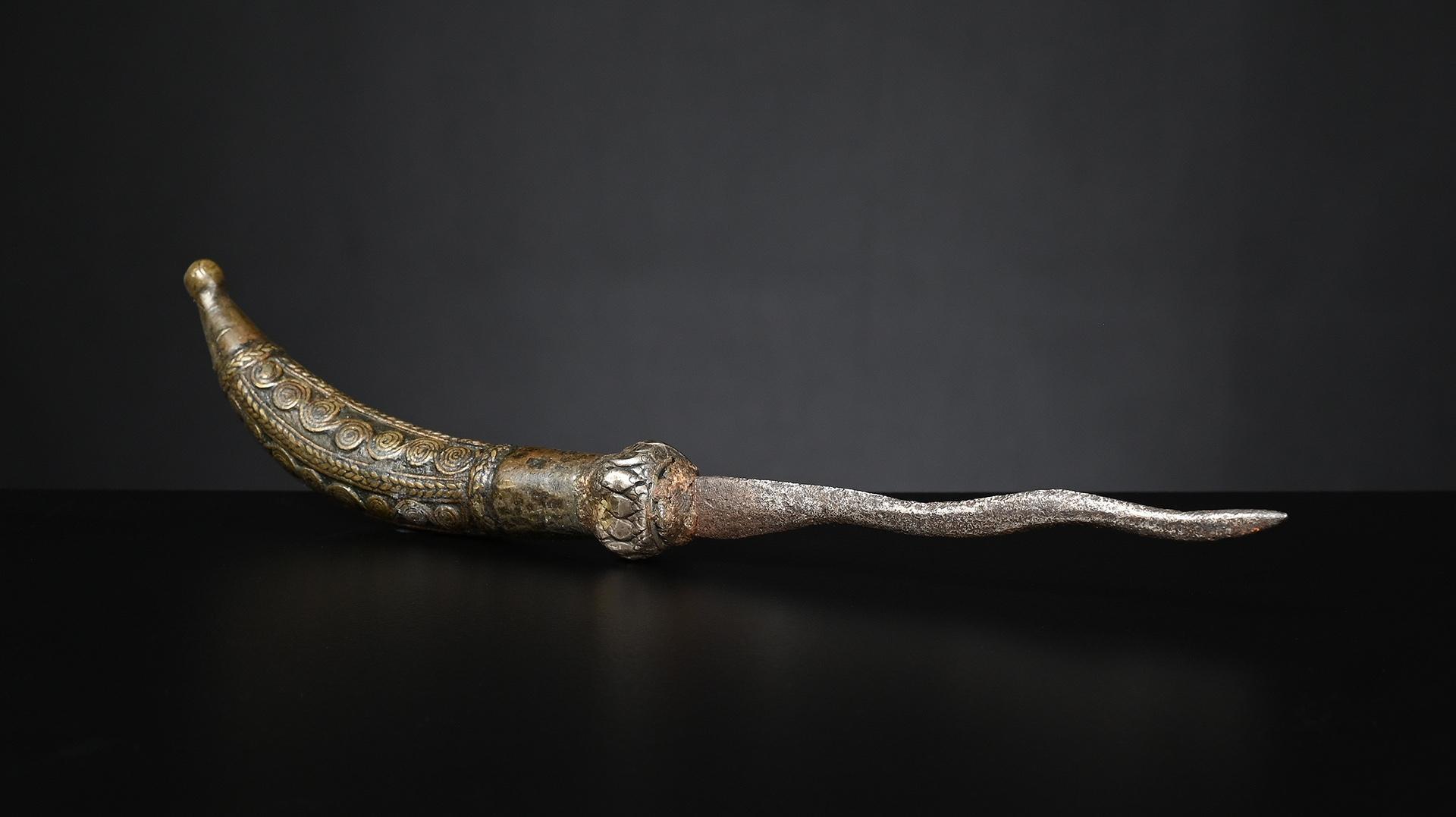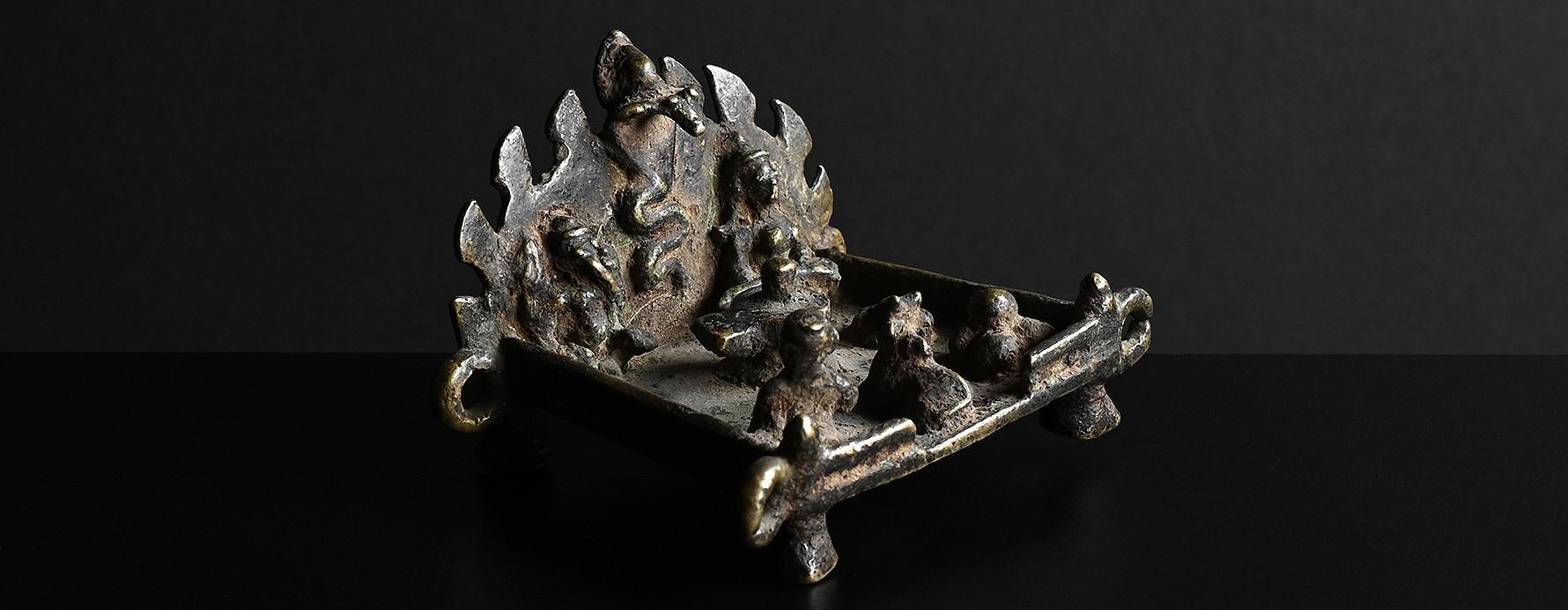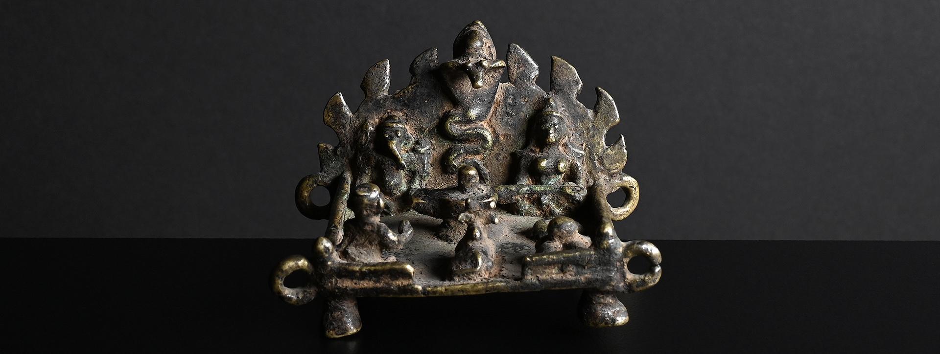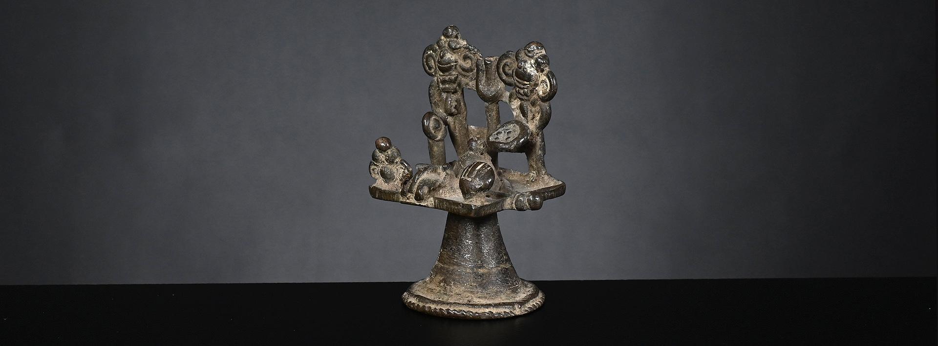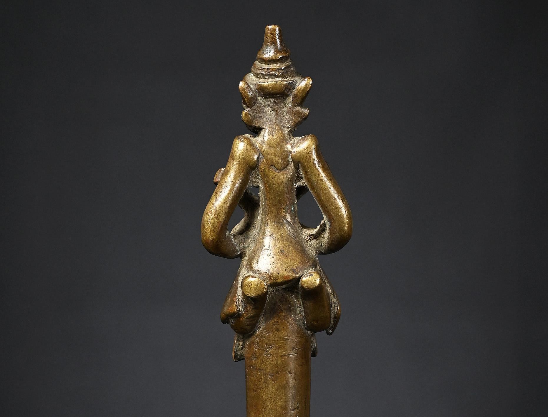 Since these statues were placed in caves or outside under a sacred tree, they show extensive weathering, giving them a special charm. condition: extensive weathering height: 273 mm (inclusive stand)