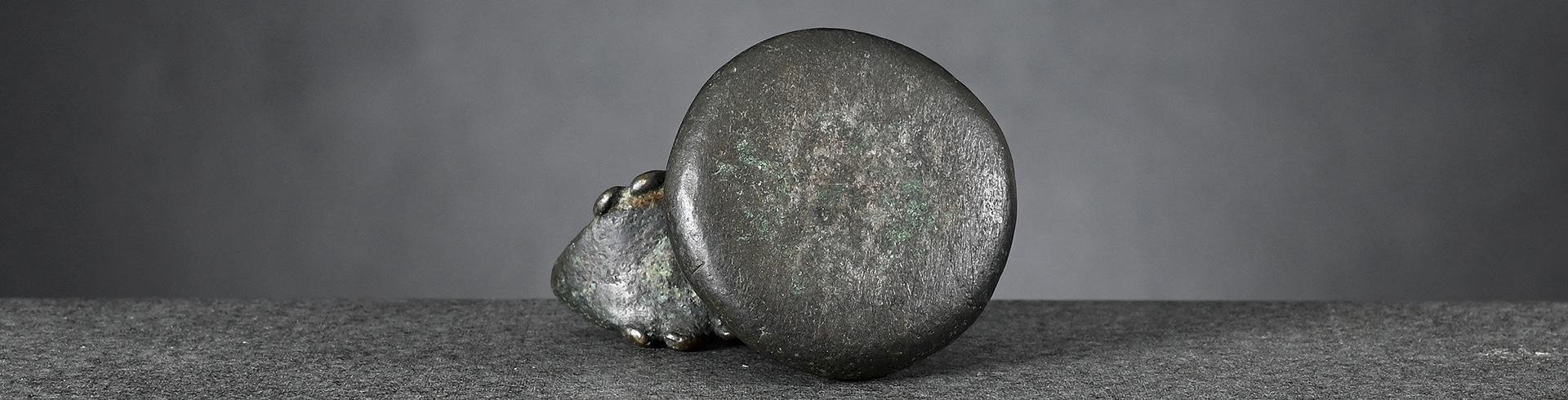 a) smooth surface, fine natural bronze patina weight: 20 tical / 303 grams height: 65 mm verification mark: worn off price: sold