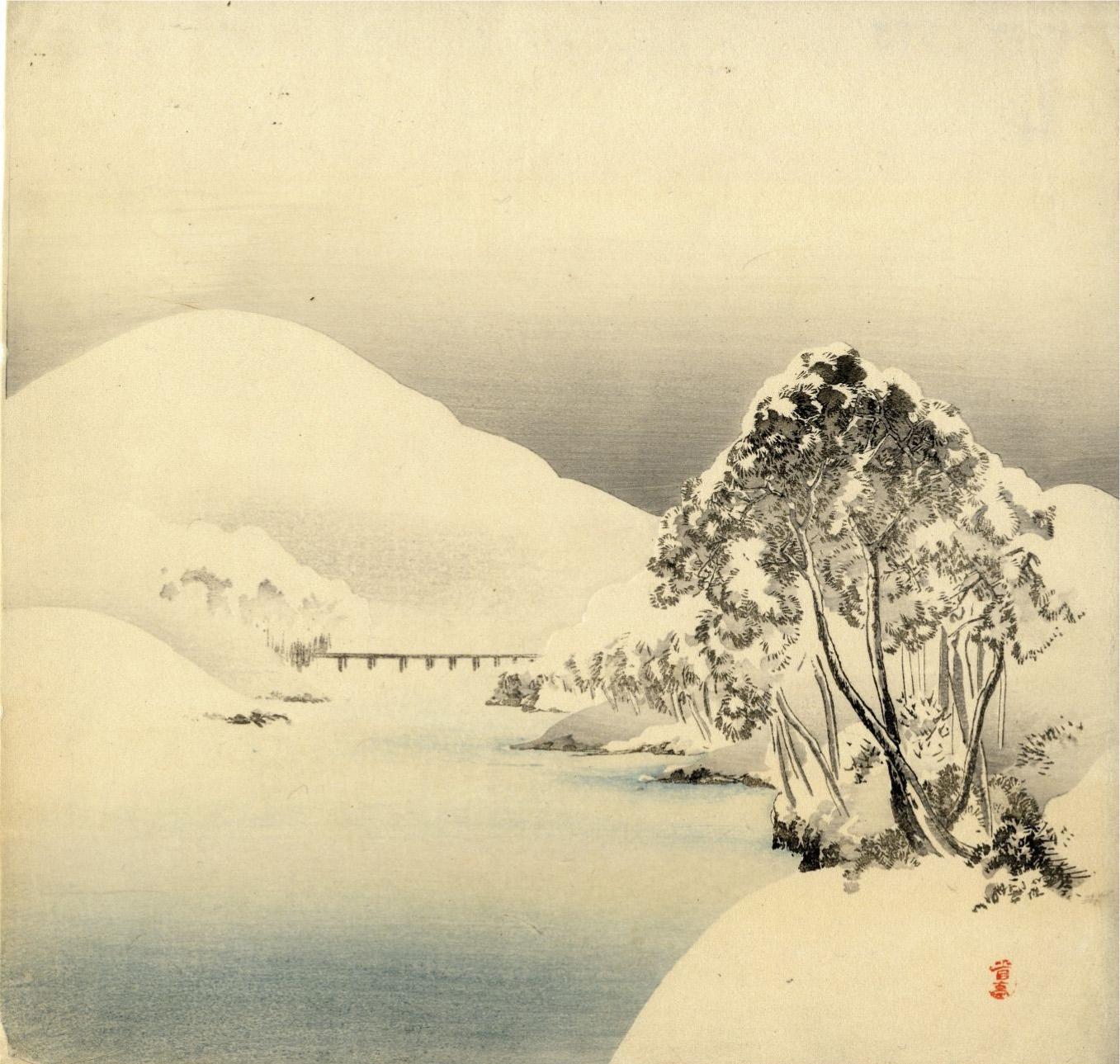 Winter landscape (detail), woodblock print