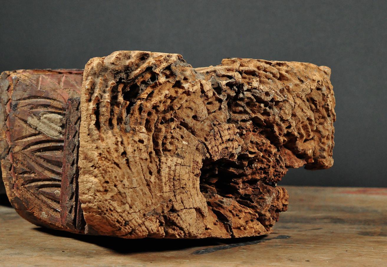 condition: the statue shows extensive wear, cracks to the wood, natural weathering and losses, commensurate with age