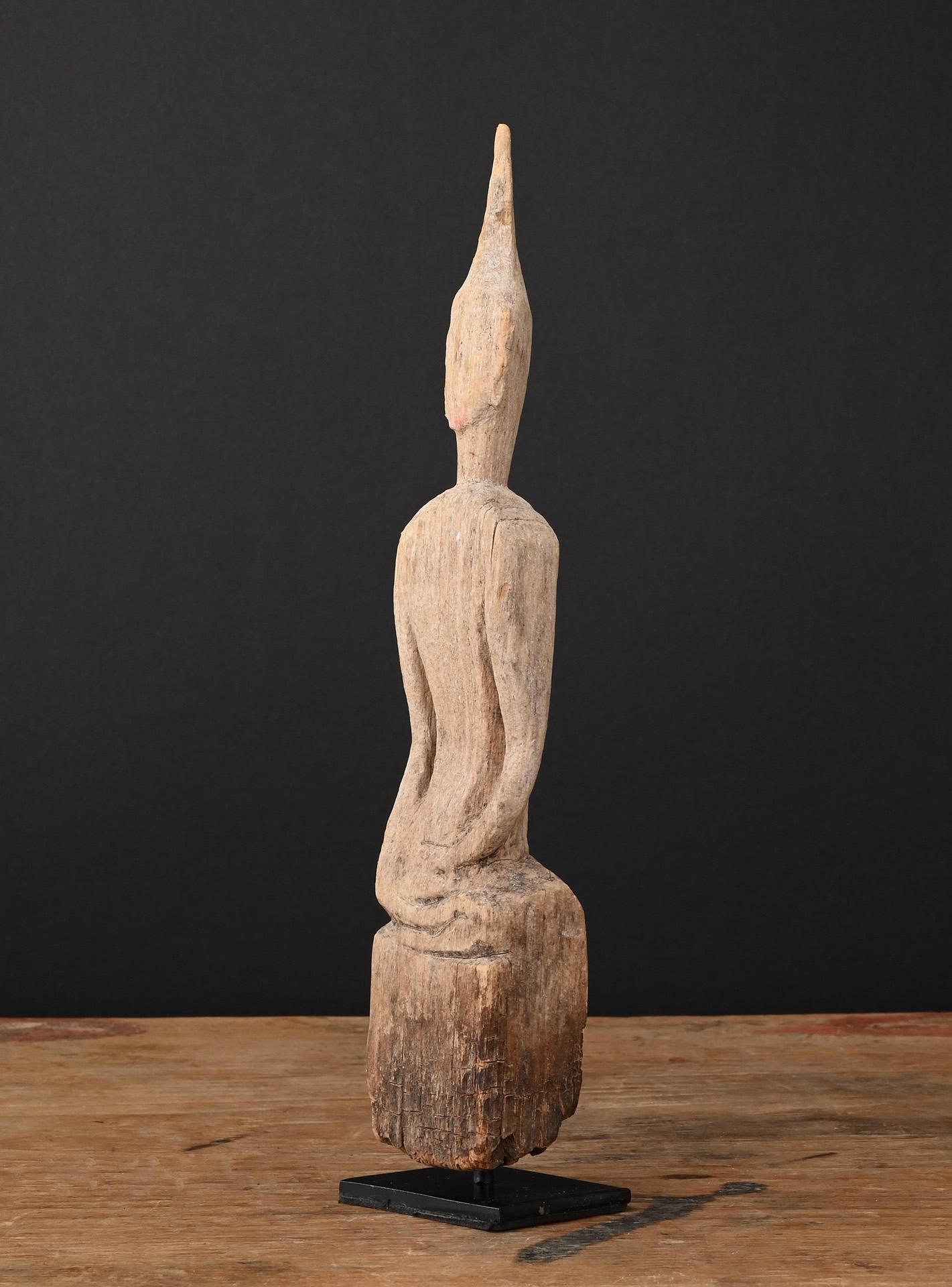 A tall and slender figure of the Buddha. This typical folk art Buddha sculpture from Laos is carved from a single piece of Teak wood.