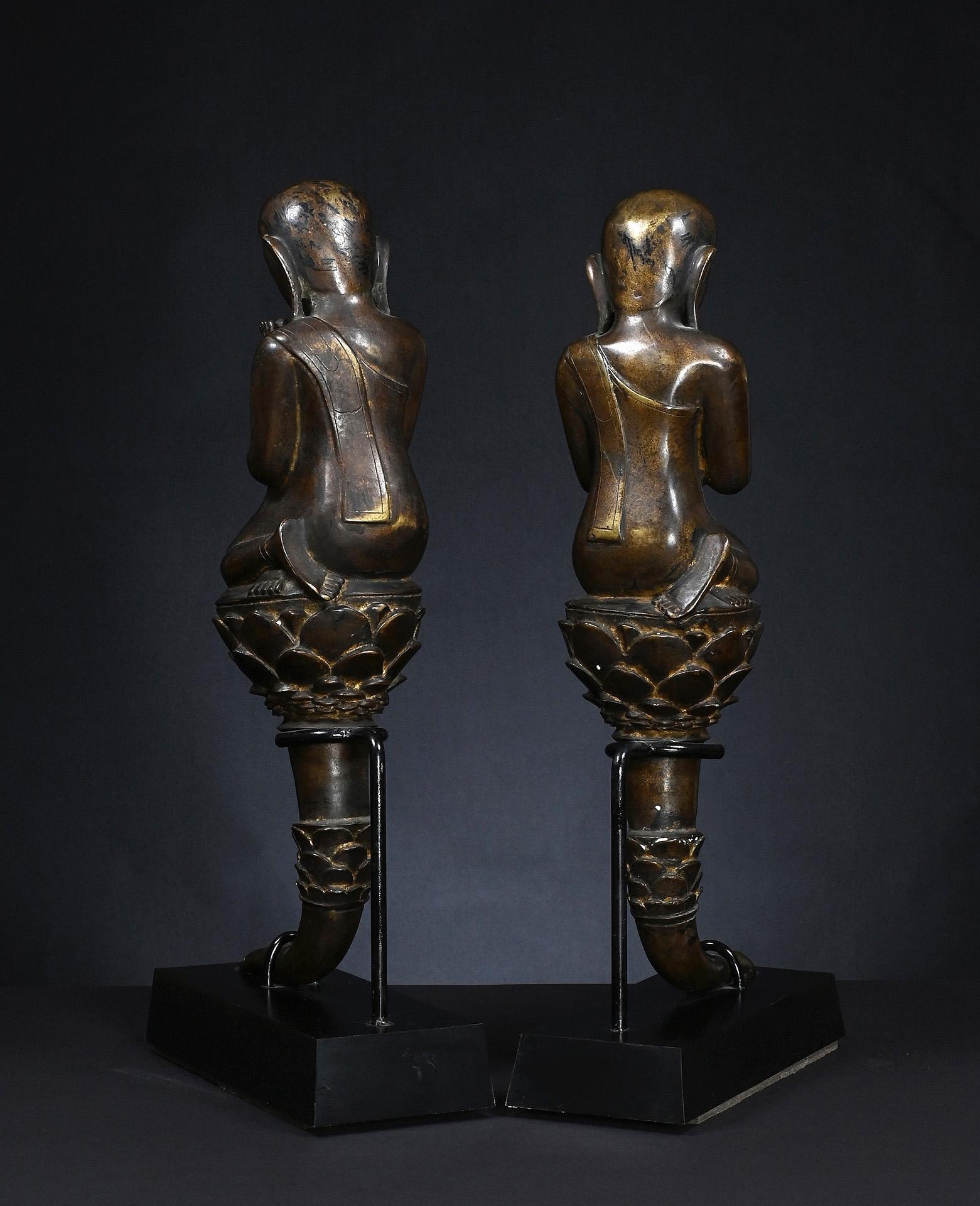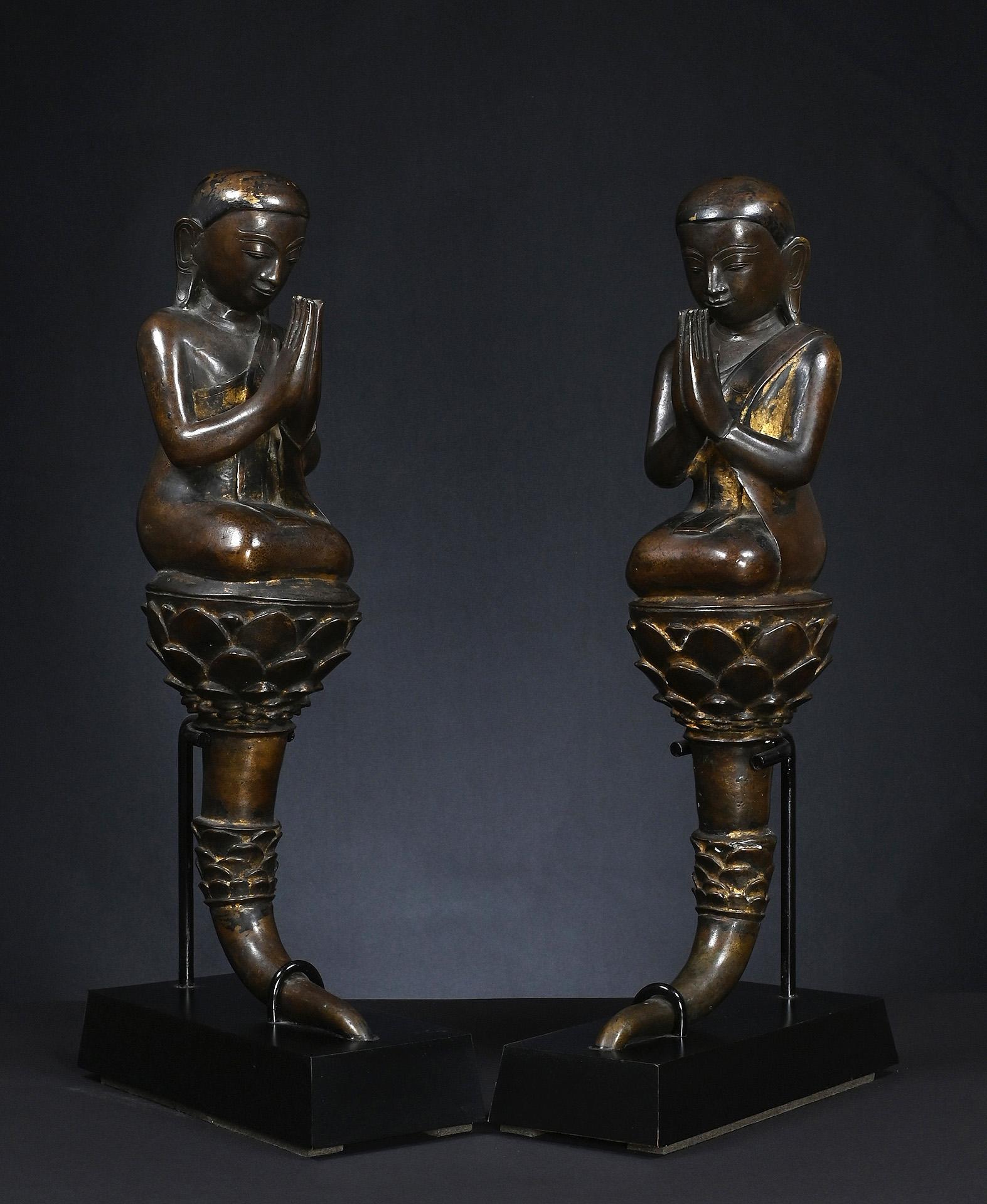 9 Two bronze statues of a matching pair of adorants, bronze, Burma or Thailand, around 1900