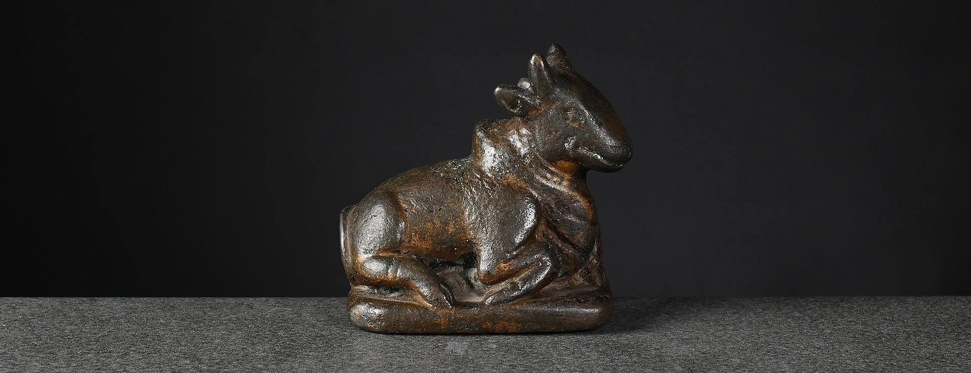 1 A pair of antique gilt bronze deers, Thailand, Rattanakosin period, pre-1933