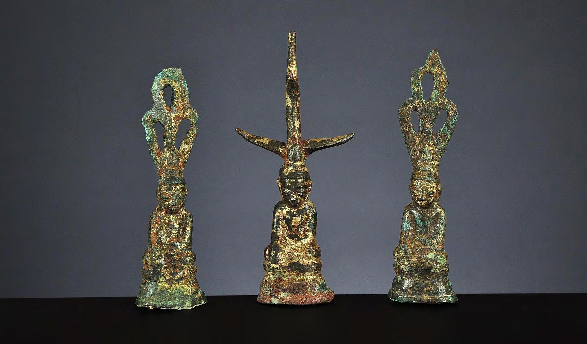 3 Seated Buddha, lacquered gilded wood, Amarapura, Burma, 18th to 19th century