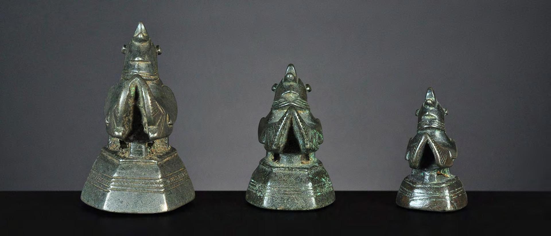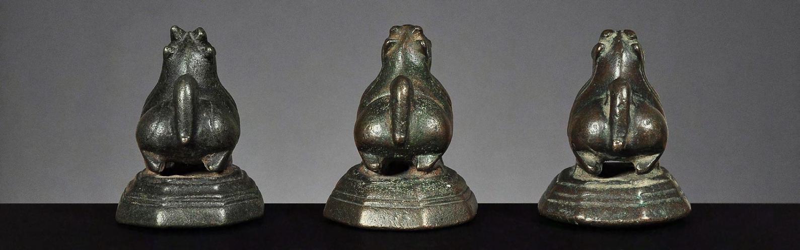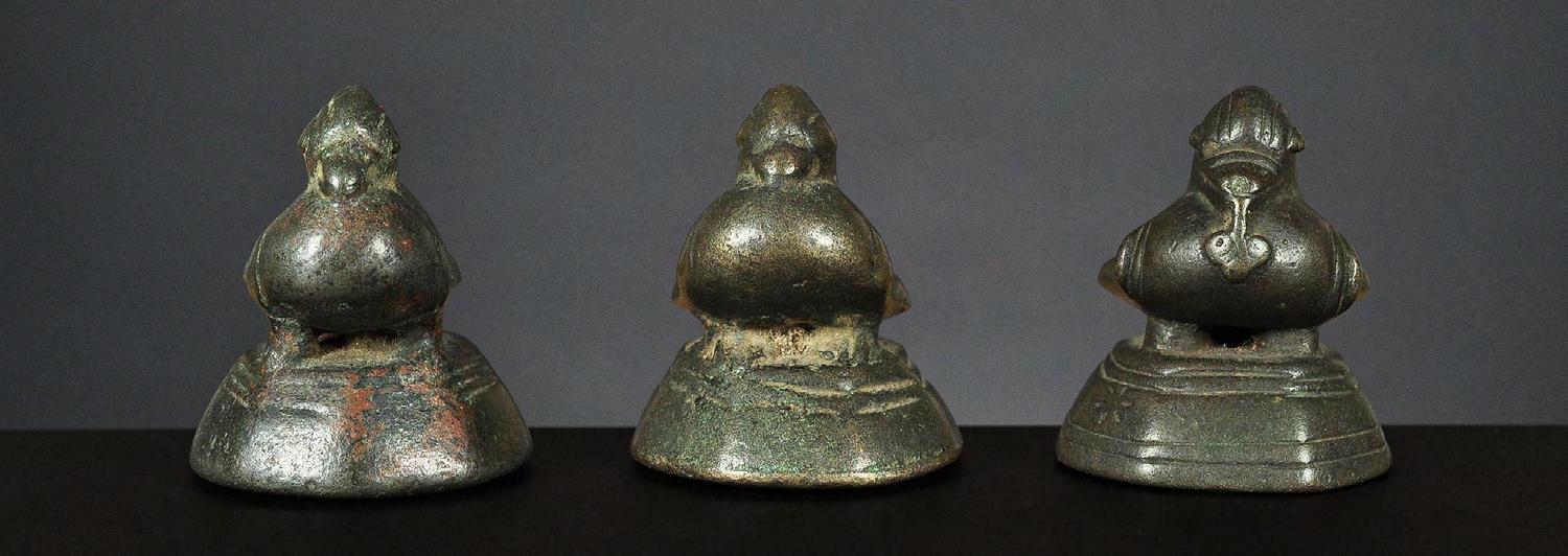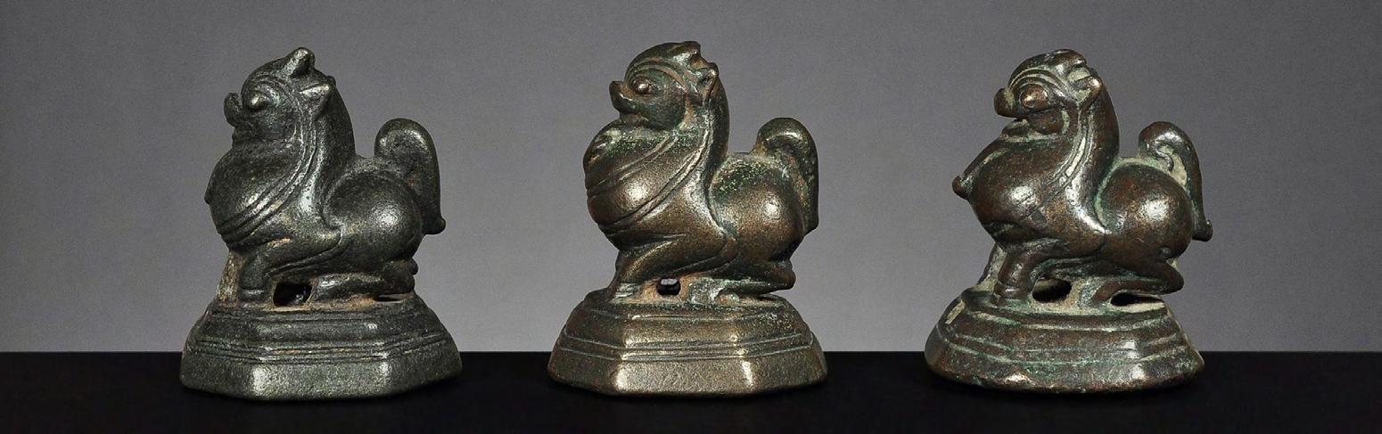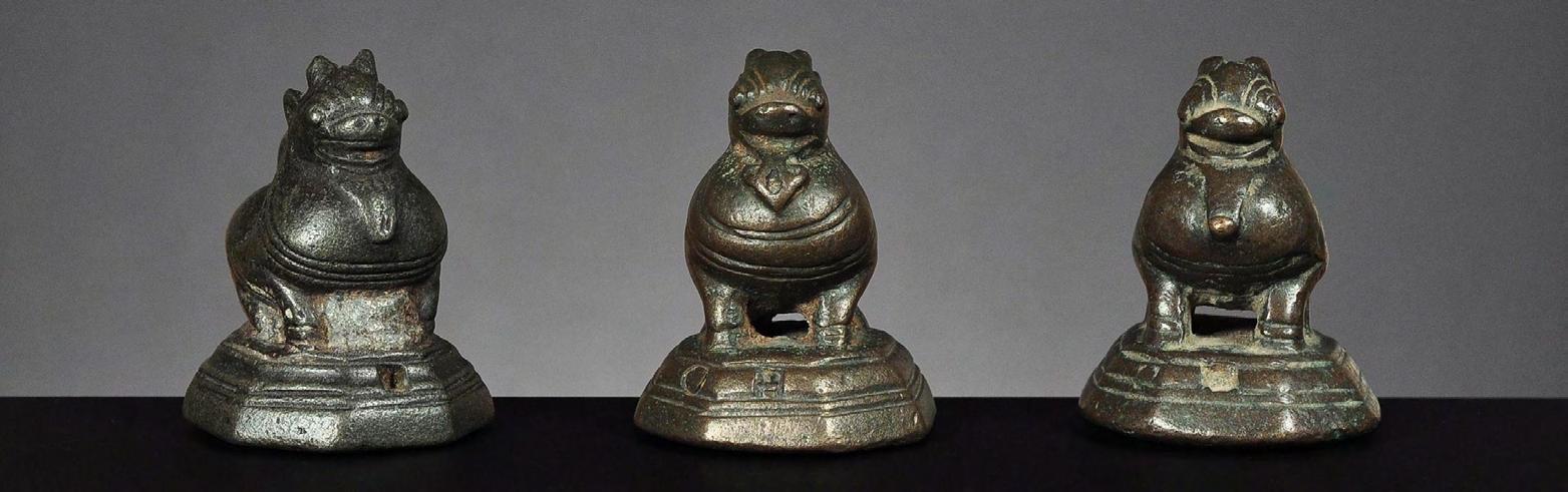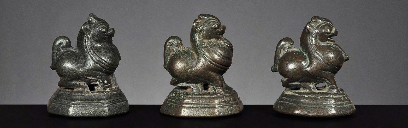 Three Chinthe weights, 1 viss Burma, 18th century catalogue no. 69, 71 & 72