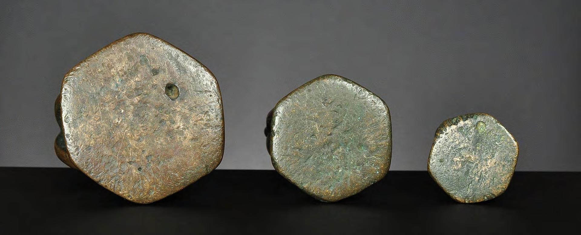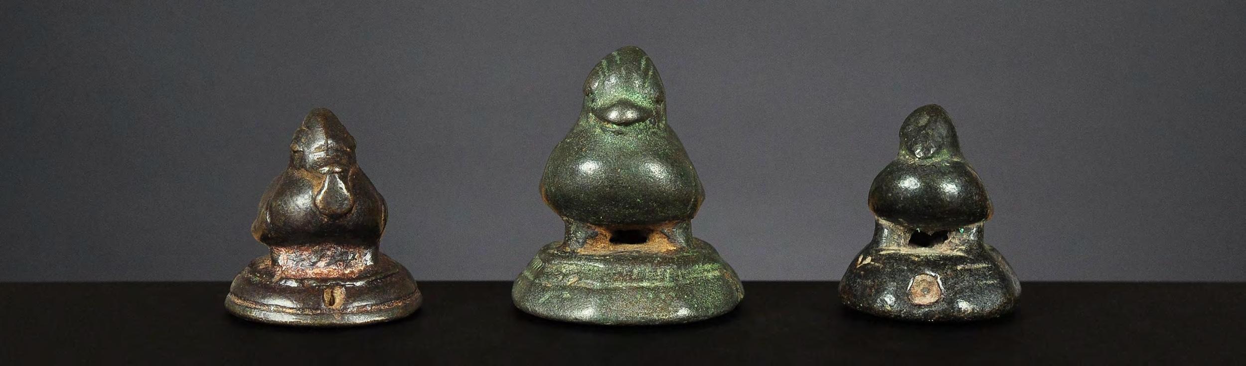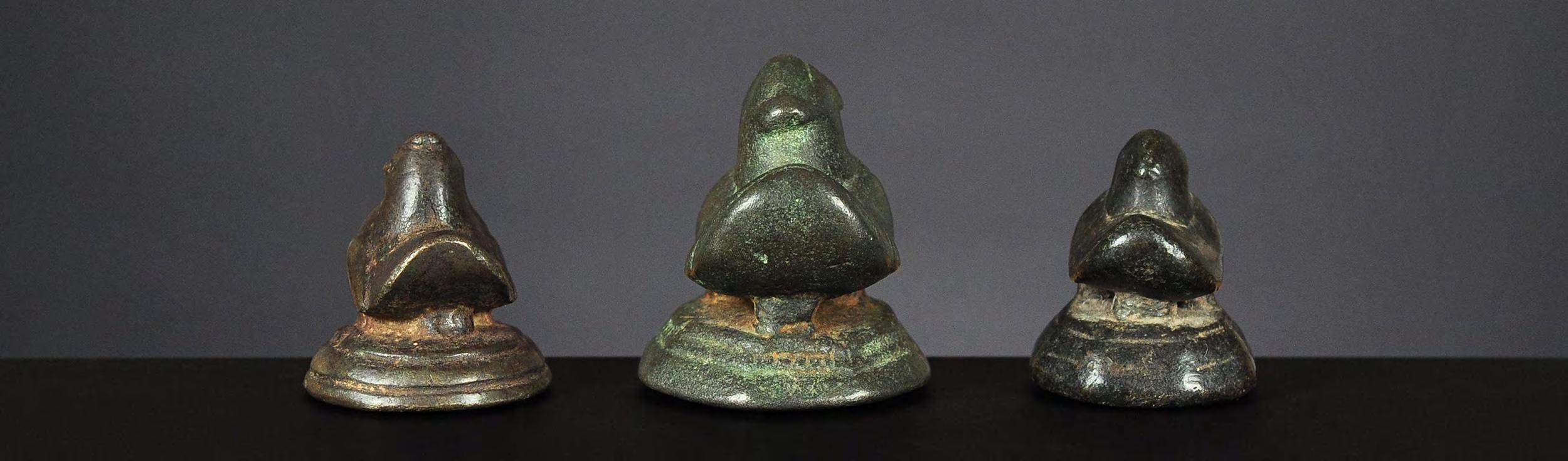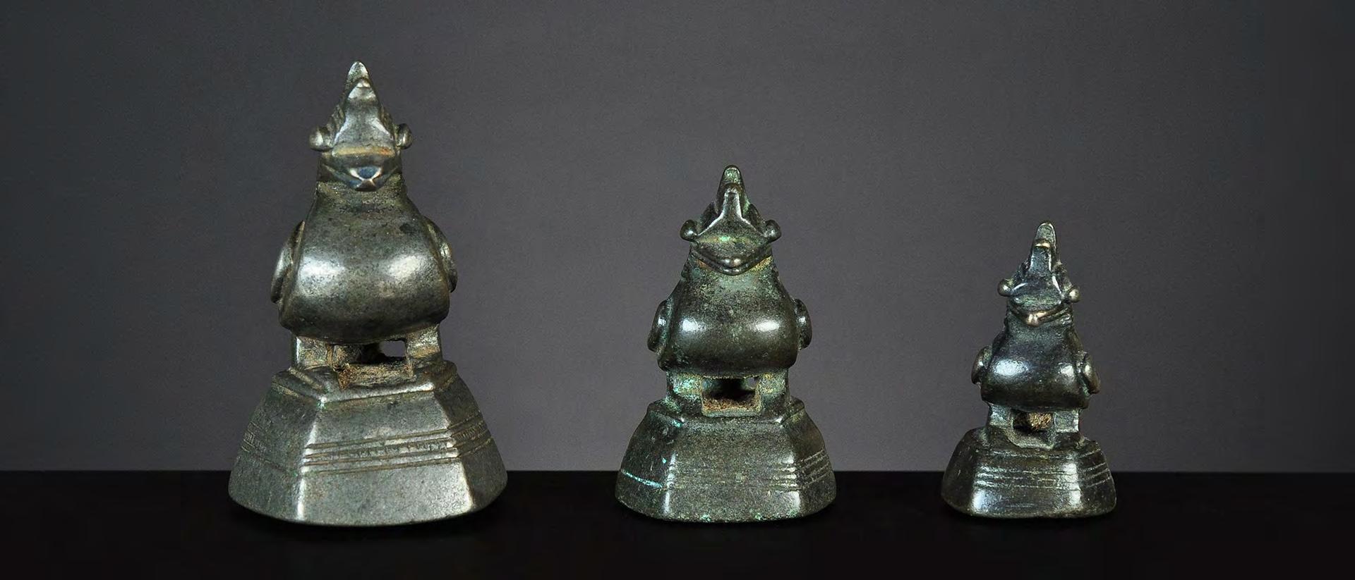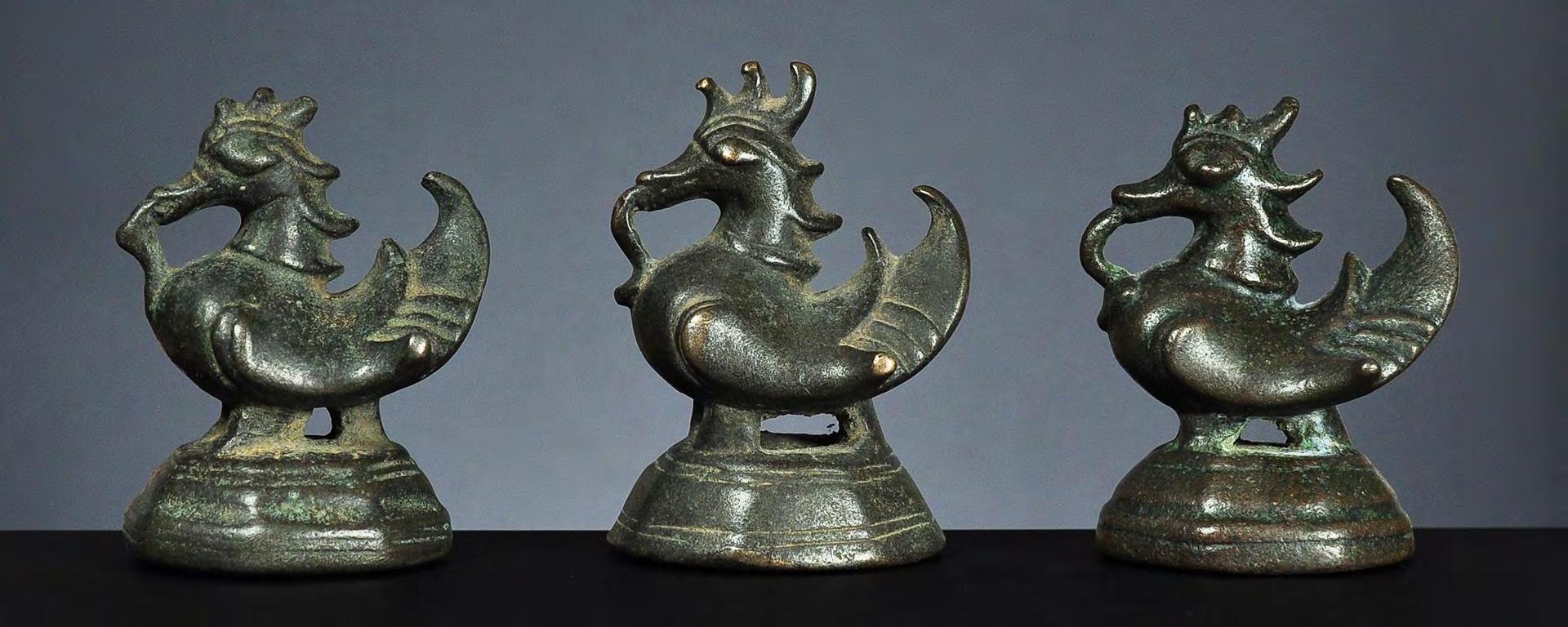 Three Chinthe weights, 1 viss Burma, 18th century catalogue no. 69, 71 & 72