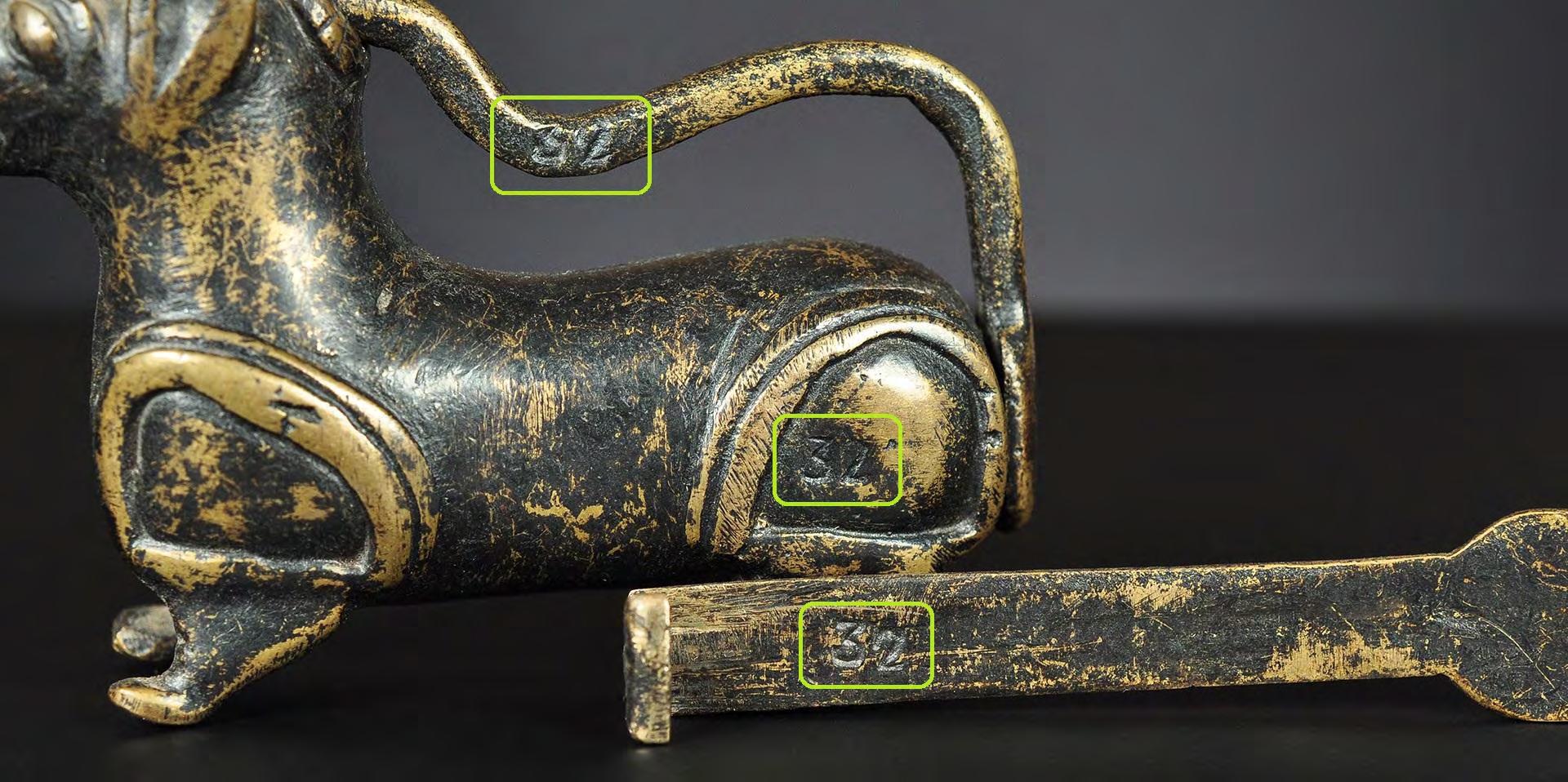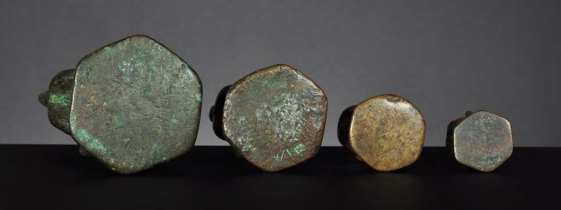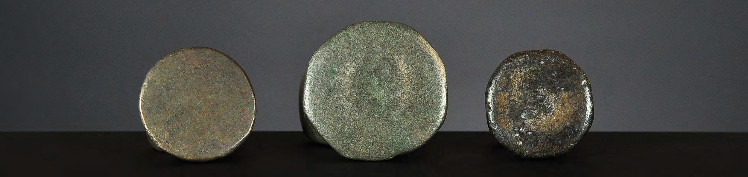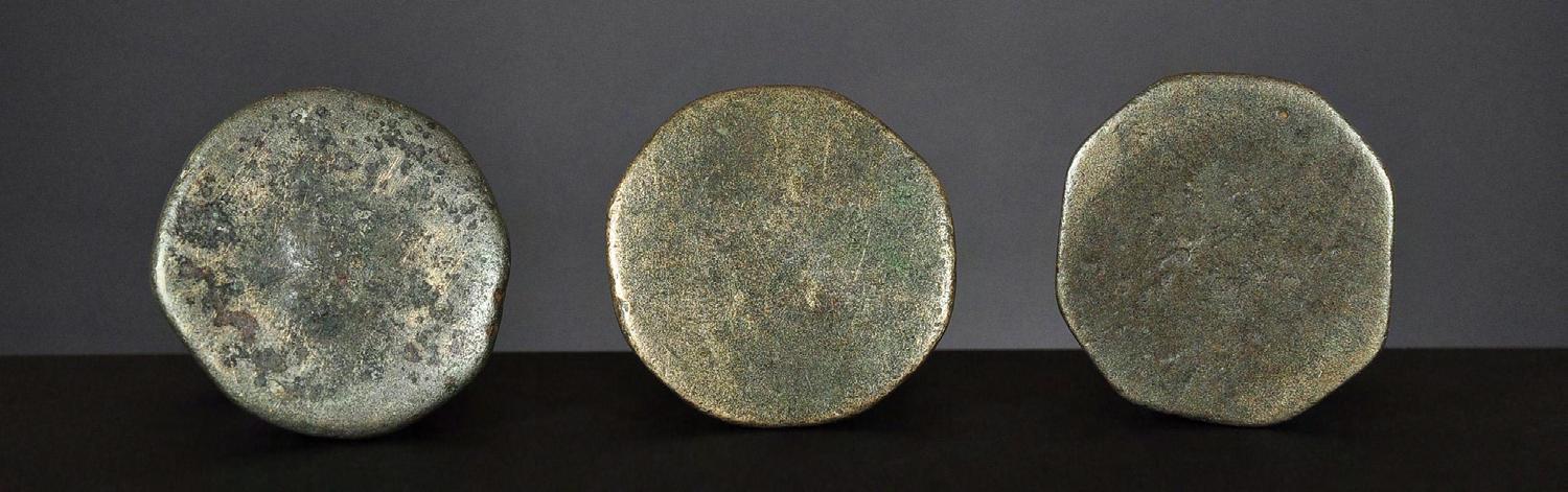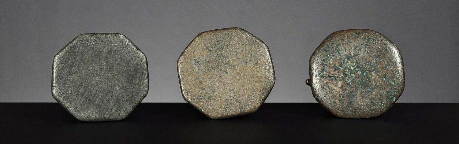 Three Chinthe weights, 1 viss Burma, 18th century catalogue no. 69, 71 & 72