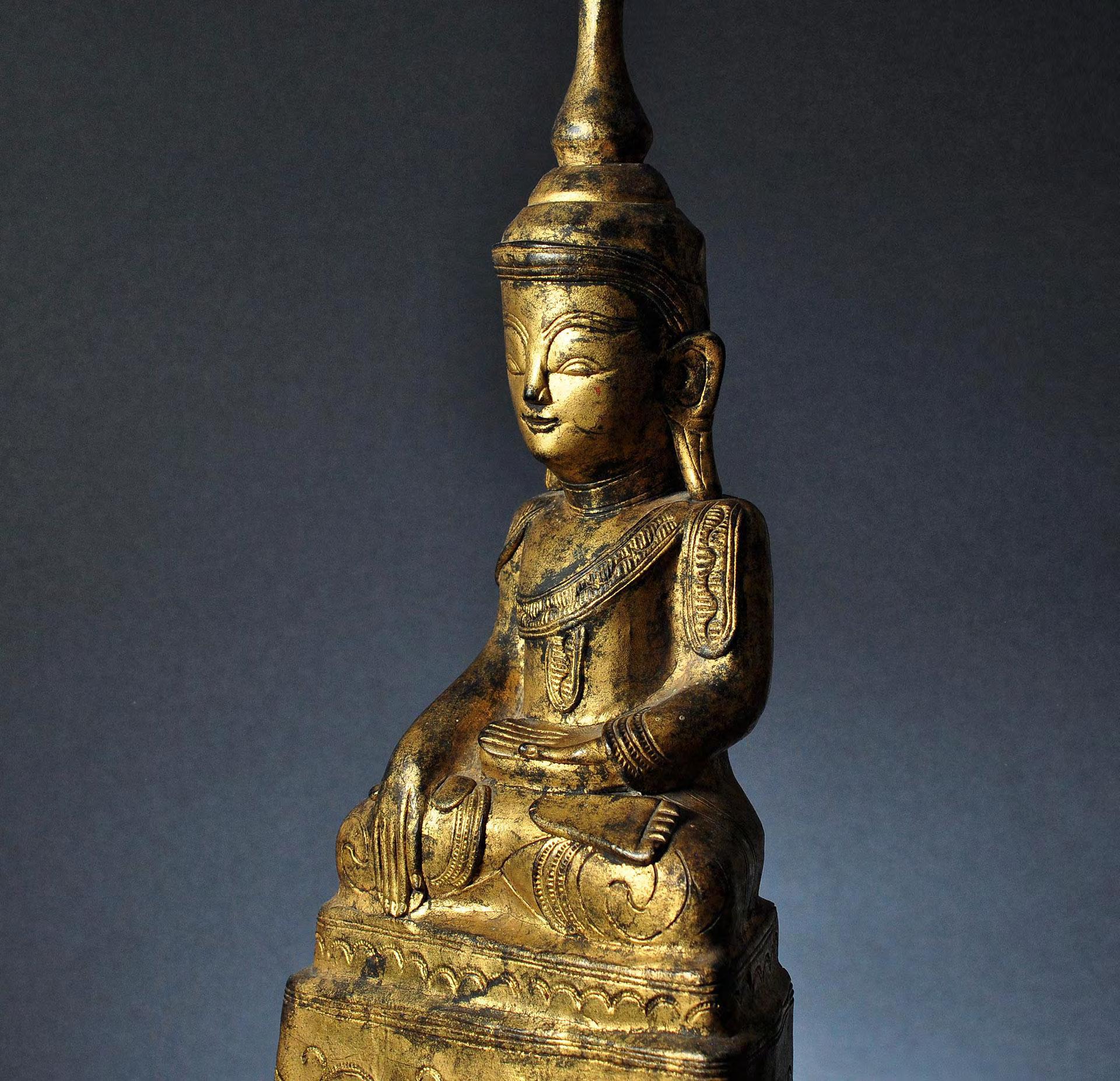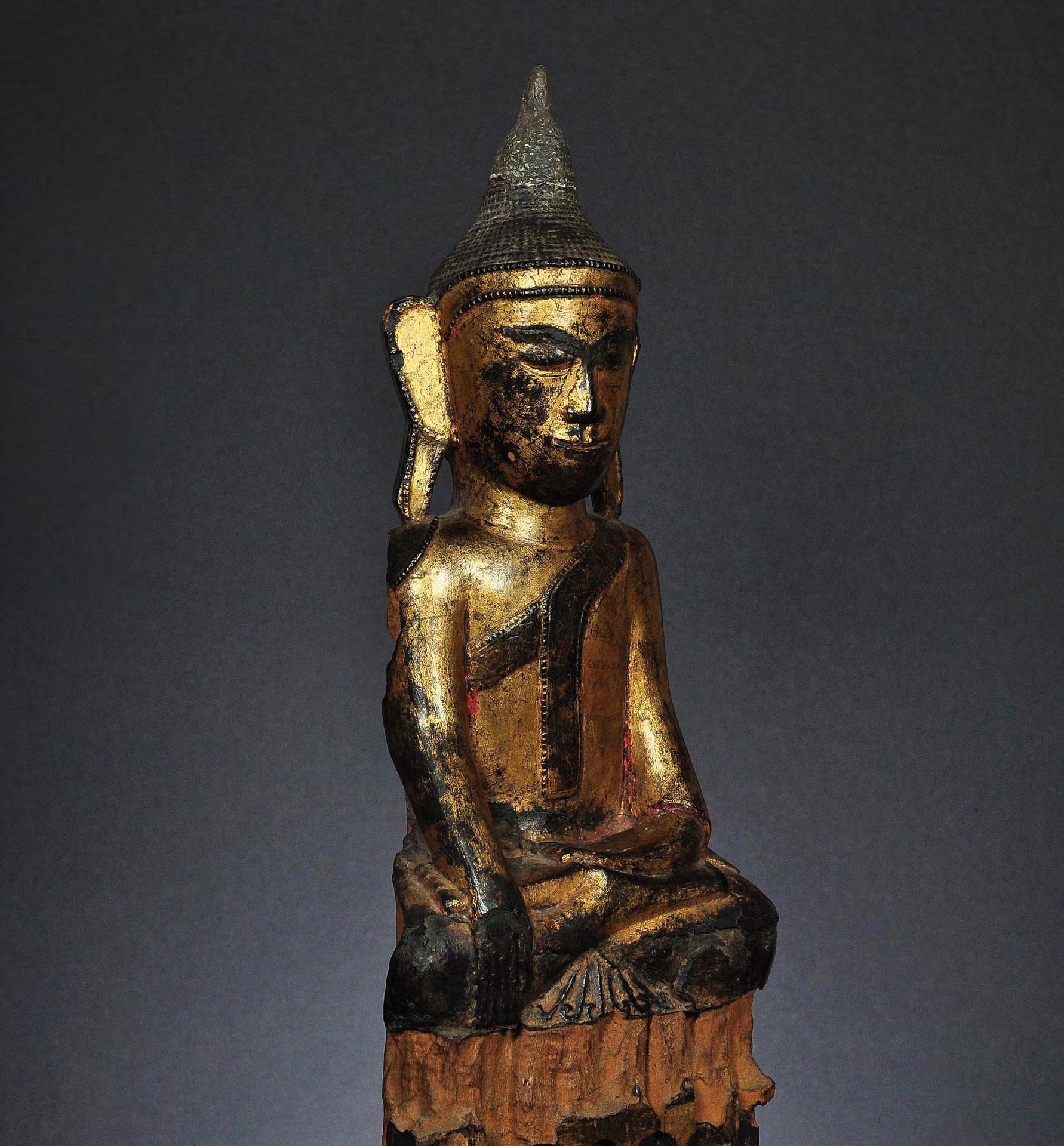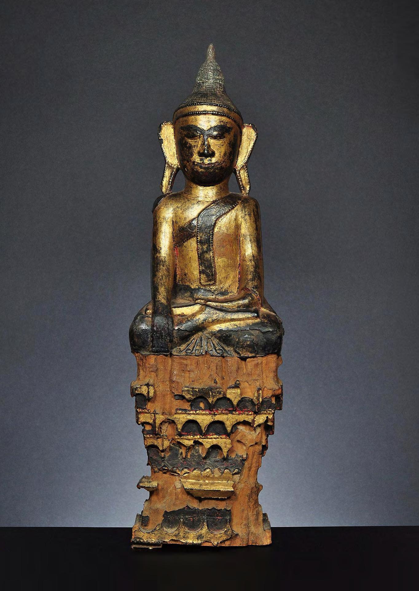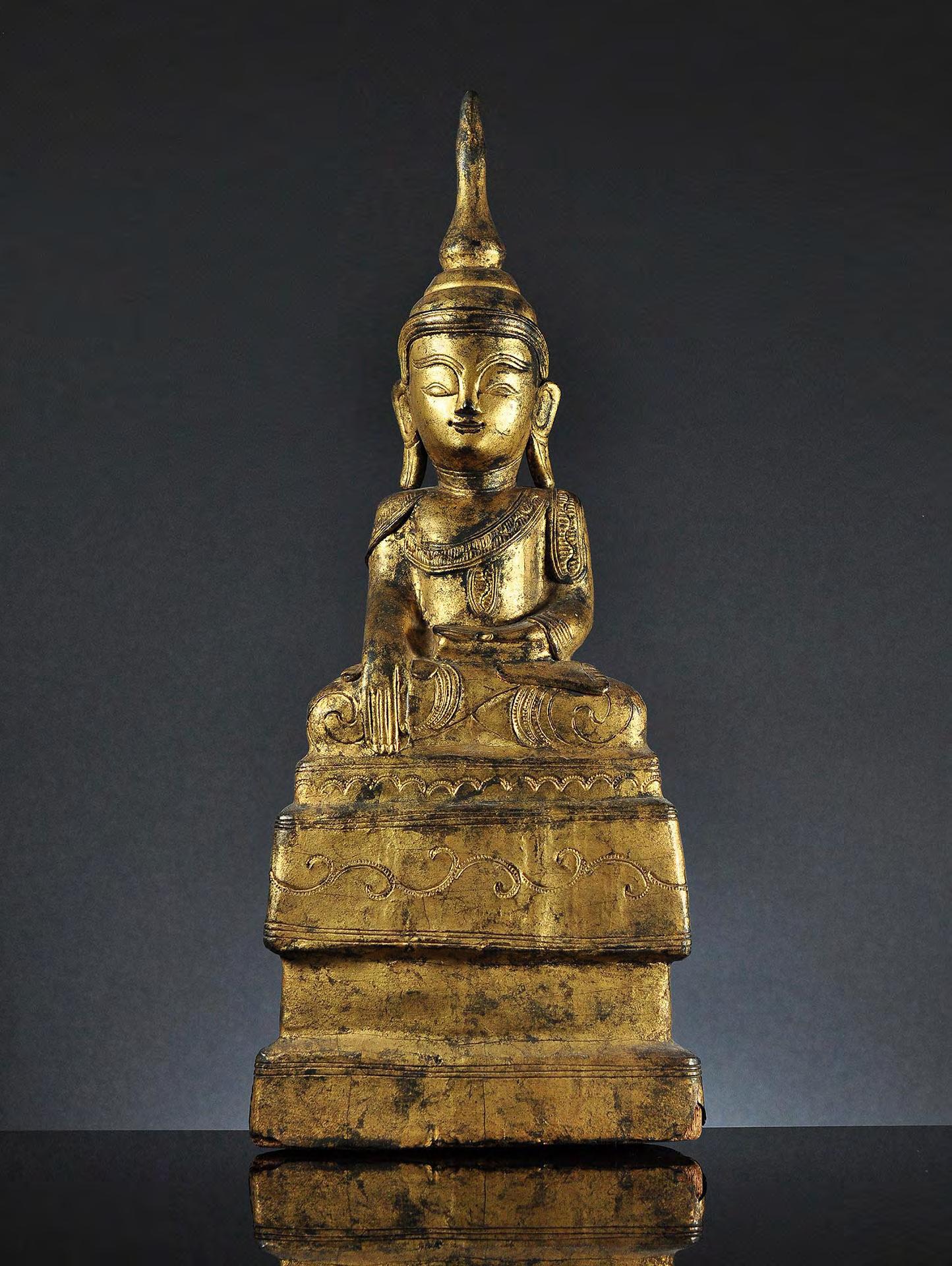 A gilded wooden figure of the seated Buddha Shakyamuni, Shan, Burma, early 19th century