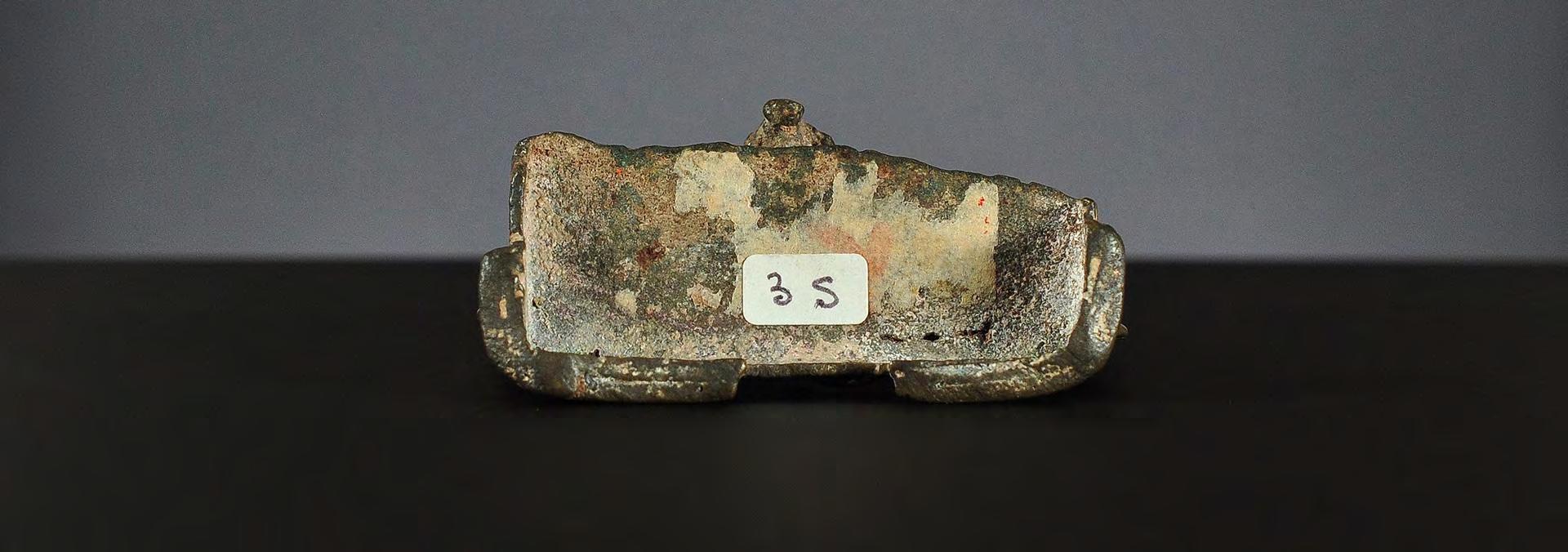 There is a cavity hollowed out at the back of the throne, used for hiding sacred material. Lid missing.
