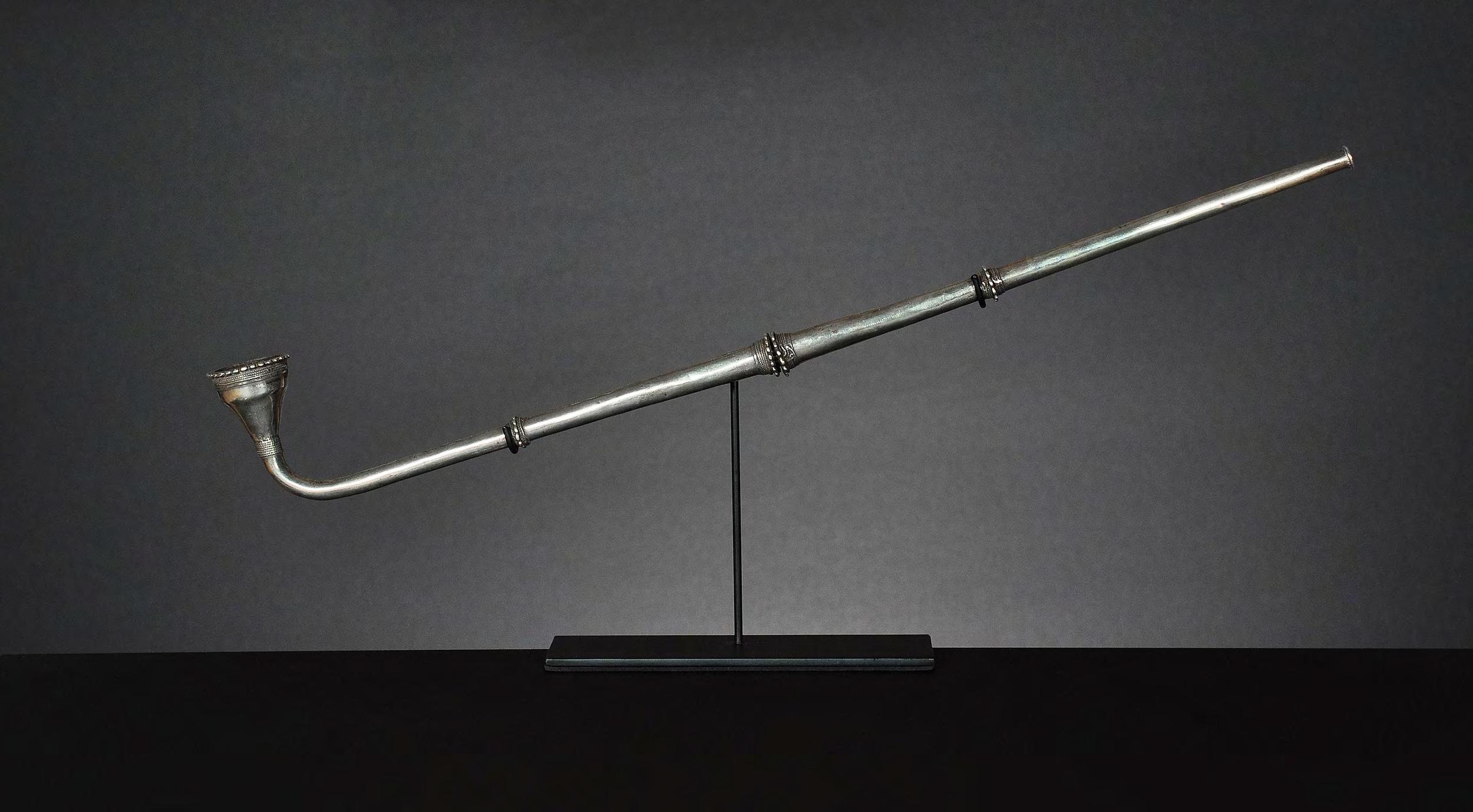 Mounted on a heavy museum pedestal.