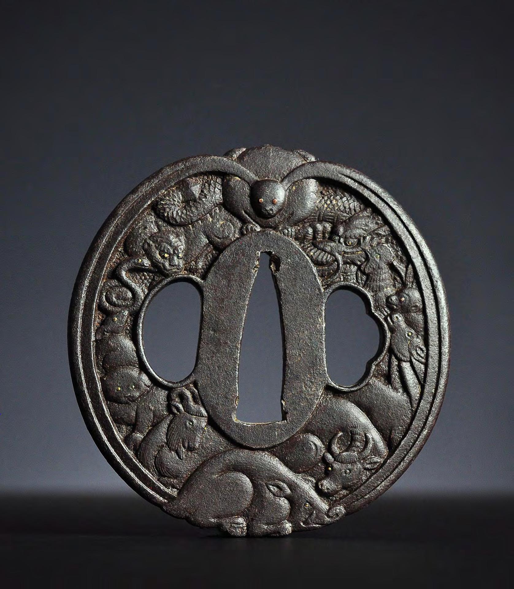 condition: chips to the lower rim, losses (tree), rich natural patina, overall good condition considering age and use
