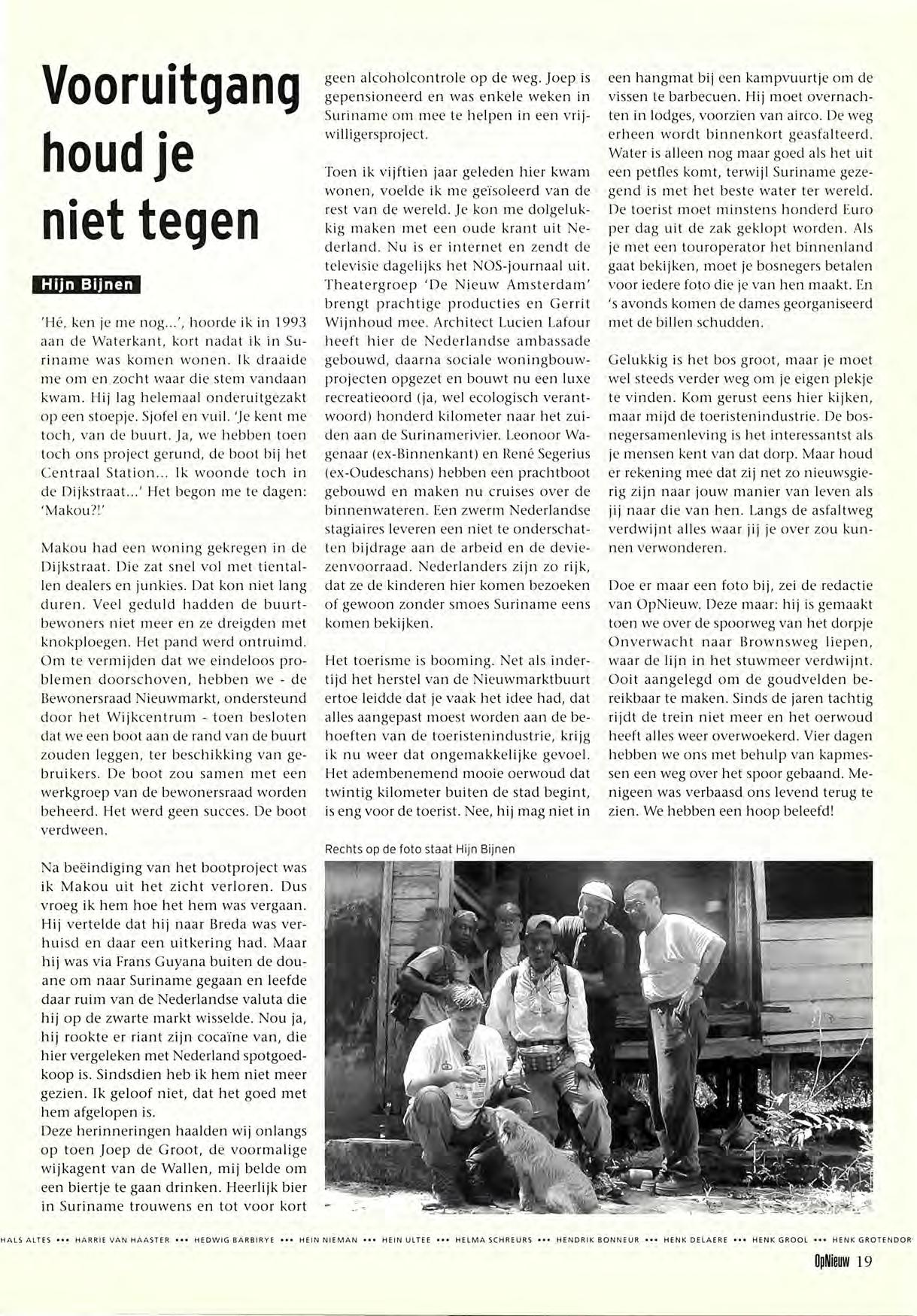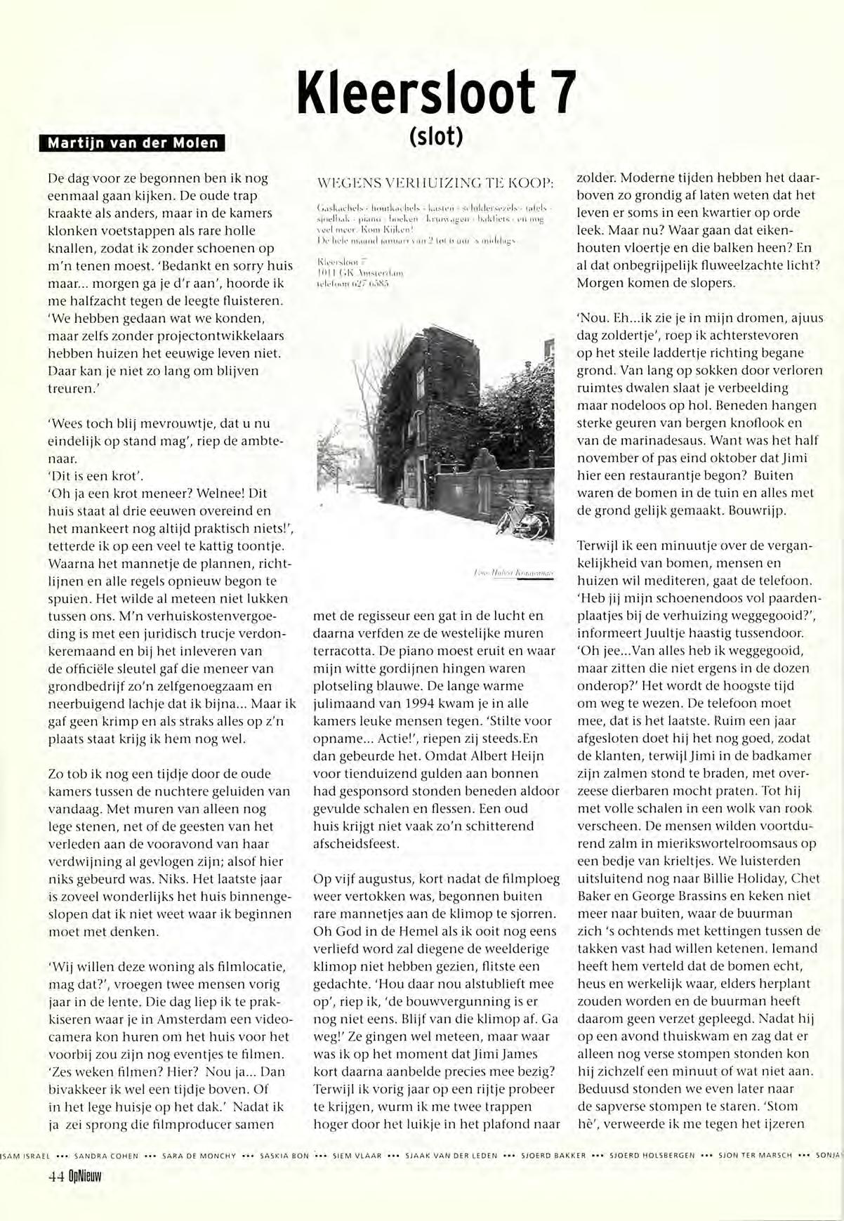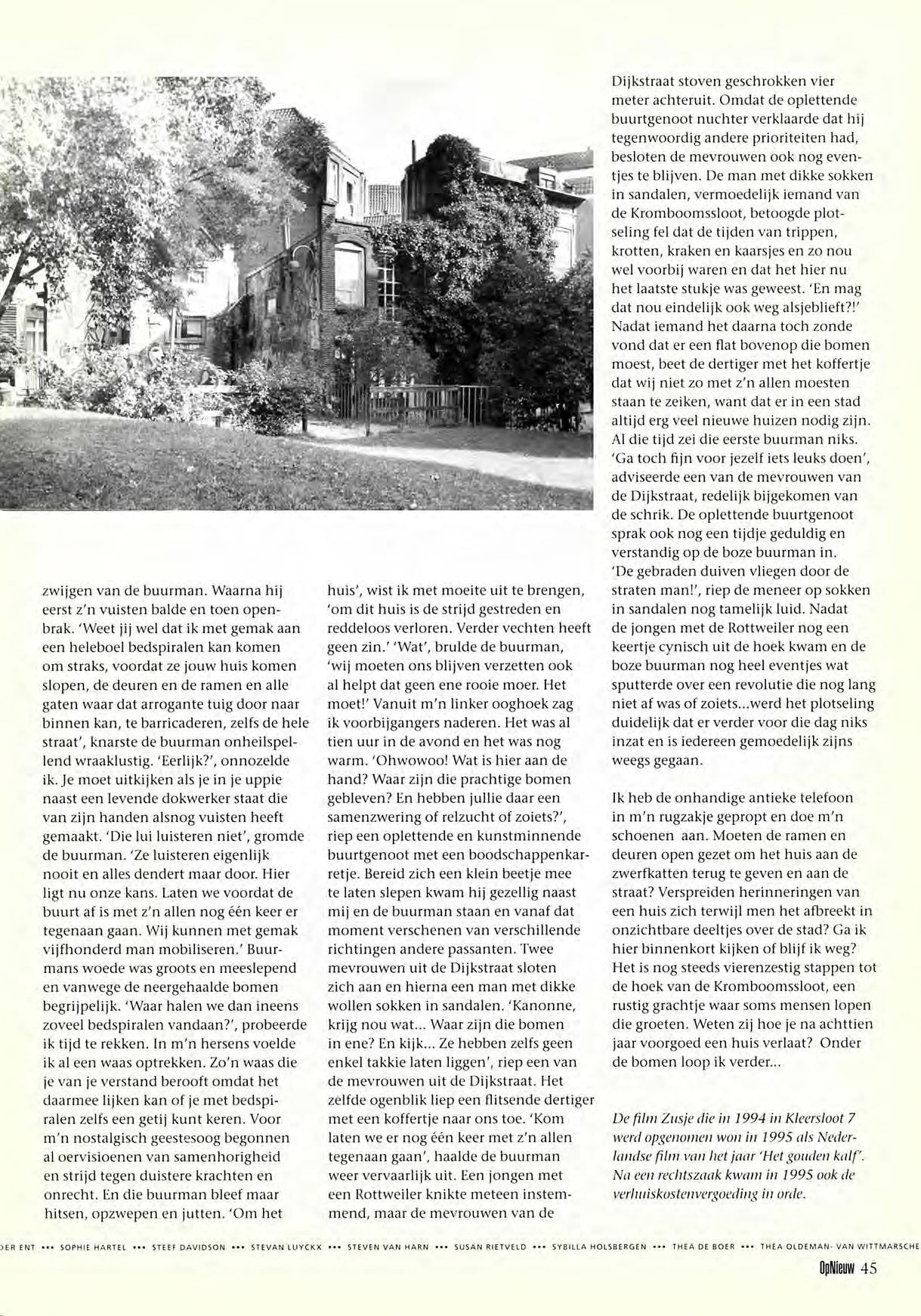 Jorge Bolle, Dunya, Piet van Harn, Greet van der Krieke, Sjaak van der Leden, Martijn van der Molen, Henk Oldeman, Riet Paasman,
