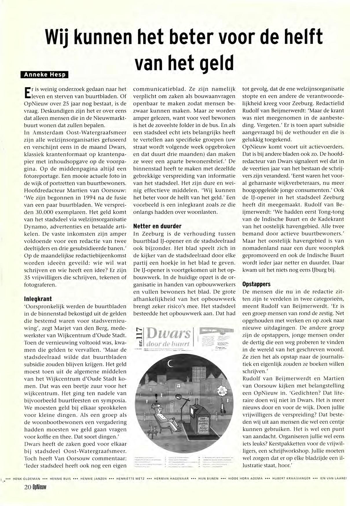 Lokkerbol, Martijn van der Molen, Henk Oldeman, Antje Postma, Piet Seysener, Hans van der Sluis, Johan Suttorp, Dunya Willeman