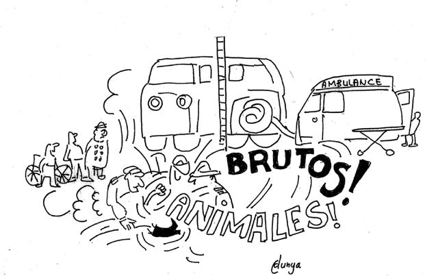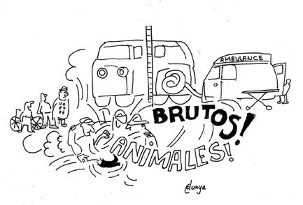 Een broeder van de ambulance probeerde de moer van de achtervork los te draaien met een buigtang. Dat ging natuurlijk niet. Voorzichtig achteruitdraaien van het wiel leidde tot nieuwe Italiaanse verwensingen. De broeder ging dapper door tot de vrouw hem ging meppen en spugen. “Dan niet”, zei de broeder, ging staan en wachtte af. Een van de agenten sprak de vrouw streng toe in het Nederlands. “Hulpverleners slaan wordt niet gedoogd, dan moet je mee naar het bureau.” Haar mond stond intussen geen ogenblik stil. Ze zat op de grond, haar voet nog steeds in het wiel. Twee broeders stonden het nu met de handen op de rug aan te zien. “Dan de brandweer maar”, zei de agent en sprak in zijn telefoontje.