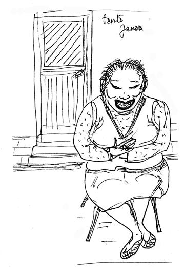 Op de Zeedijk zitten mensen op hun stoep bij zonnig weer. Een van hen is mevrouw Yang Tsa, die we Tante Jansa noemen. Zij heeft een serie gouden tanden die ze graag toont Daarom lacht ze bijna altijd. Haar hoofd is bezaaid met korte haartjes, de schedel zie je erdoorheen glimmen. Haar piepkleine voeten zijn in gevlochten muiltjes gestoken. ‘Jij schoene uitdoen?’ vroeg ze me eens. Wat ik verbaasd deed. Ze moest opnieuw lachen. ‘Jij hele glote voeten, niet Chinees’. Haar man Yang Ming, natuurlijk Jamin genoemd, keek bedenkelijk, dus ik trok snel mijn schoenen weer aan. En schaamde me.