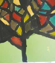 Je schildert een boom met kale takken die elkaar kruisen, en kleurt de rest vormen in.