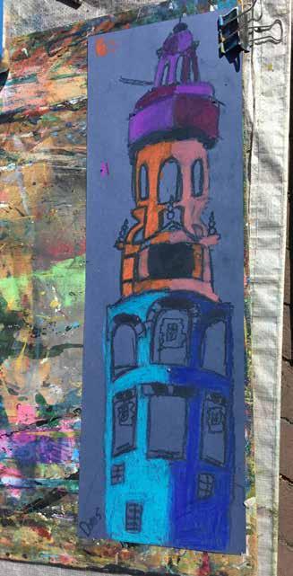 De week erna tekenden we de Montelbaanstoren, wat inhoudt dat je heel goed moet kijken. Resultaat: 17 verschillende torens!, allemaal even mooi.