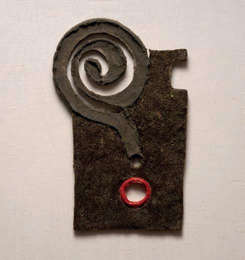 Ja, tot en met september. Ik maak altijd driedimensionaal staand werk en nu kwam Rogier Fokk van Kunst & Cultuurcentrum Amsterdam met de vraag of ik niets iets plats en hangends wilde maken en toen zijn we op die maskers uitgekomen en dat moet passen in die kleine vitrines, dus dat werd een hele nieuwe manier van werken voor mij. Een leuke uitdaging was dit. Heel anders en nieuw. Het is ook een uitdaging om van zo’n opgelegd idee iets moois te maken.