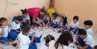 Facilitators conducted several playful sessions showing colors, geometric shapes, and collaborative work. At this stage, children develop preparation for learning and learn numbers with tissue paper or china paper, using the technique of rubbing to develop fine motor skills.