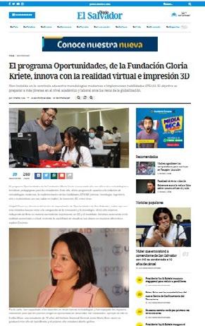 Over the last 19 years, the Gloria Kriete Foundation has impacted over 3.2 million Salvadorans in the areas of health, education, employability, community development, entrepreneurship, technology, innovation, and the environment.