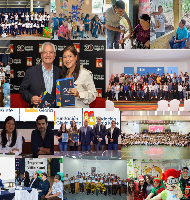 El año 2025 reafirmó el valor de una visión social construida con constancia, alianzas estratégicas y propósito compartido. En estos 21 años de Fundación Gloria Kriete hemos consolidado una red sólida de ayuda y colaboración, que nos permite generar oportunidades reales y soluciones sostenibles para fortalecer el desarrollo de nuestro país.