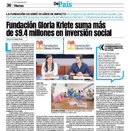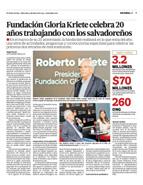 For 20 years, the Gloria Kriete Foundation has impacted more than 3.3 million Salvadorans in areas such as health, education, employability, community development, entrepreneurship, technology, innovation, and the environment.
